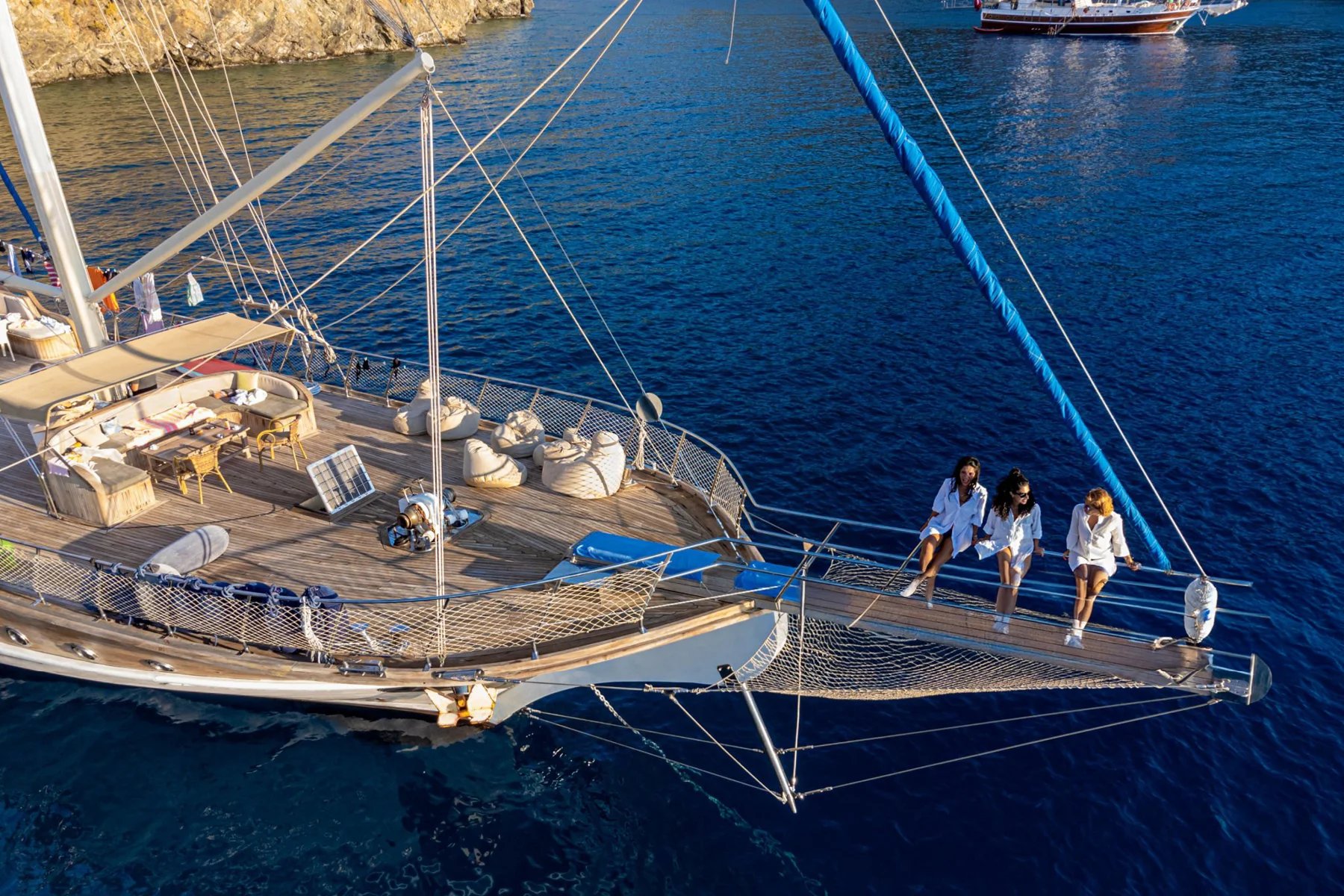 Akşam yemeği güvertede, dalgaların ritmi ve günün son ışıkları eşliğinde servis edilir. Yıldızların altında geçirilen bu ilk gece, unutulmaz bir Fethiye tekne tatilinin başlangıcını müjdeler.
