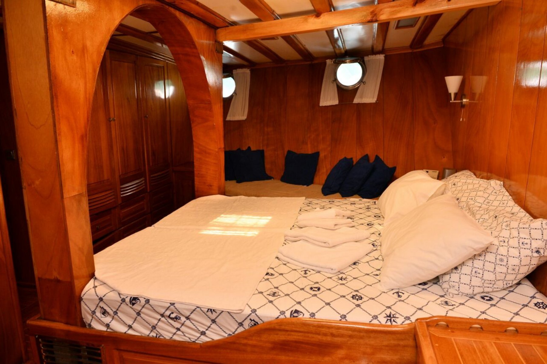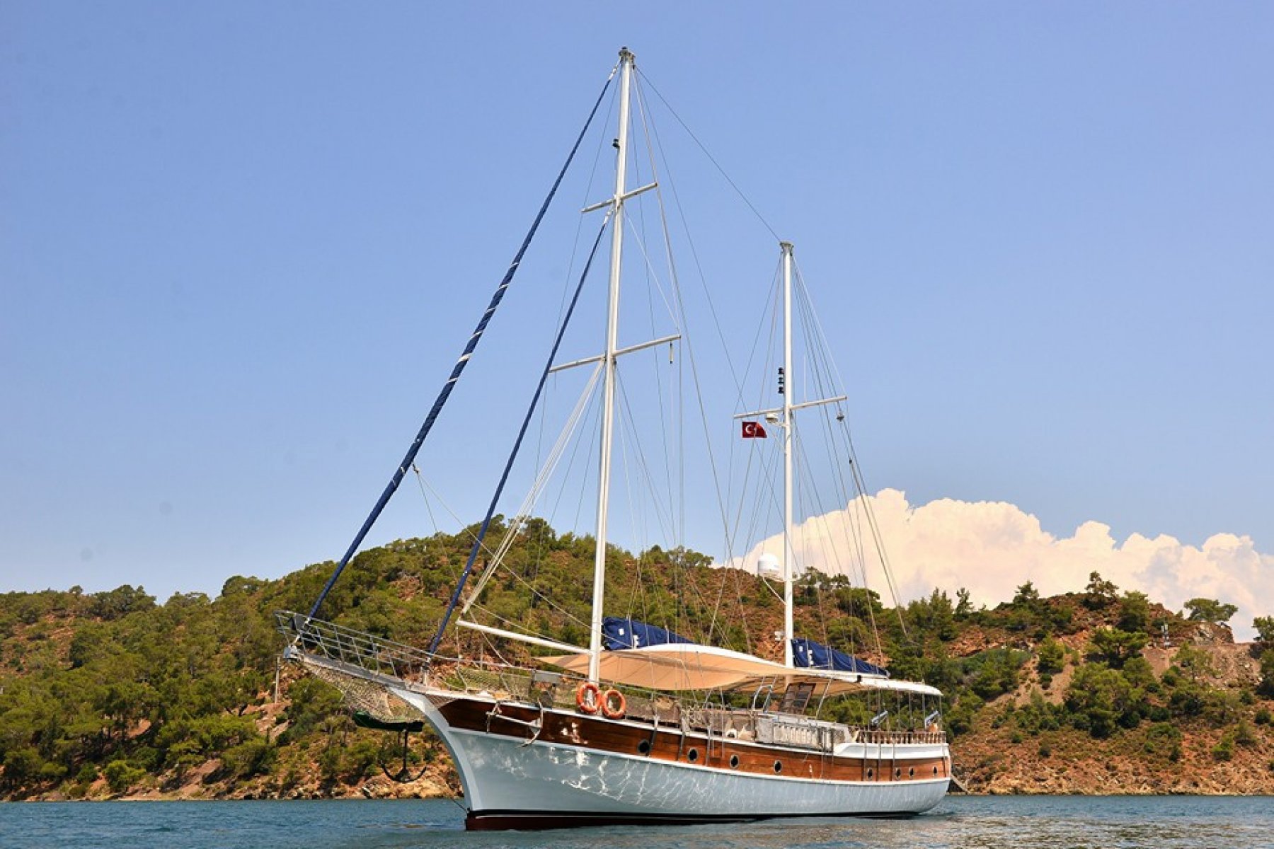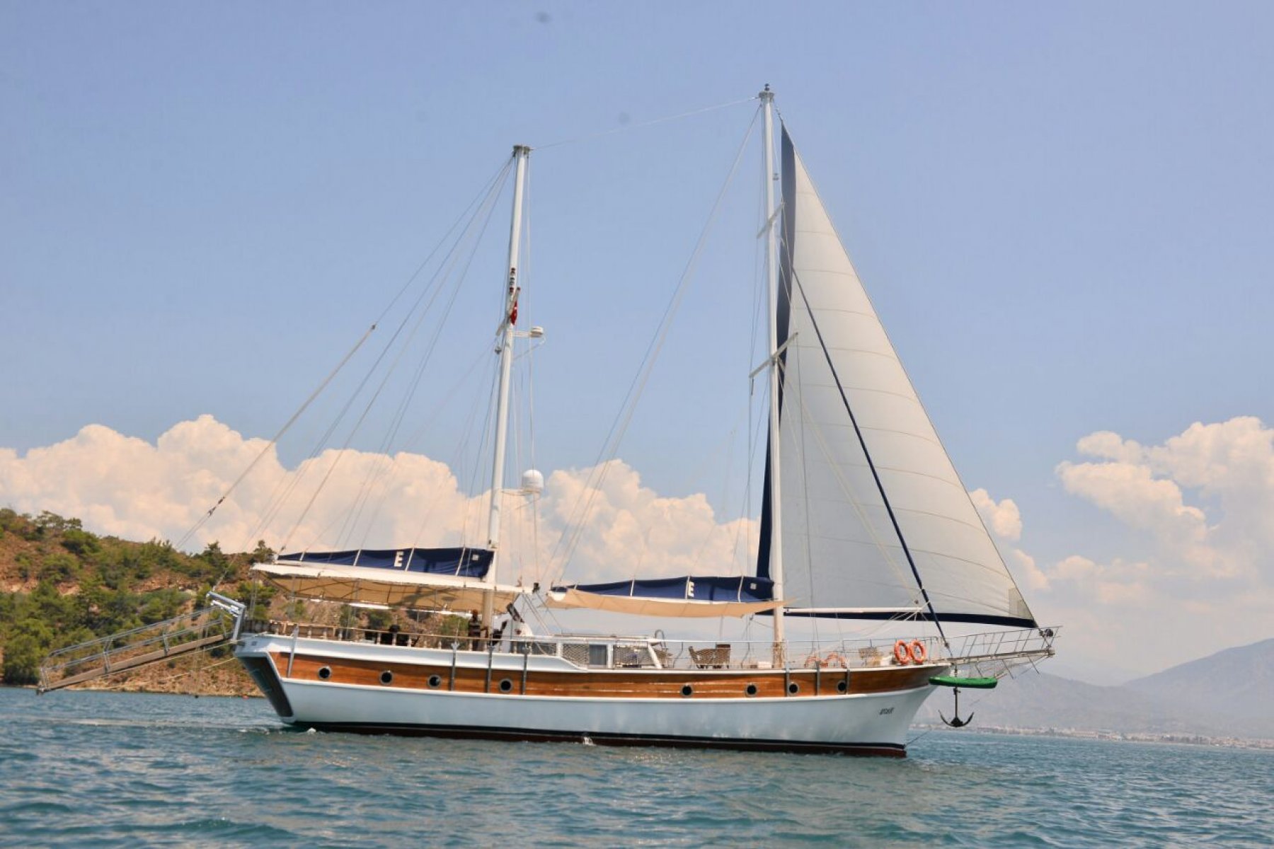 2015 yılında geçirdiği yenileme çalışmaları ile son halini alan bu özel guletimiz 2 master ve 3 double yataklı kabini ile Fethiye tekne kiralama yapmak isteyen 10 kişilik gruplar için ideal bir gulettir. Guletimiz de misafirlerimizin rahatı için tüm donanımlar en ince ayrıntısına kadar düşünülmüştür. Guletimiz kaptan, aşçı, ve servis personelinden oluşan 3 kişilik mürettebatı ile Fethiye çıkışlı Göcek koyları rotasında hizmet vermektedir.