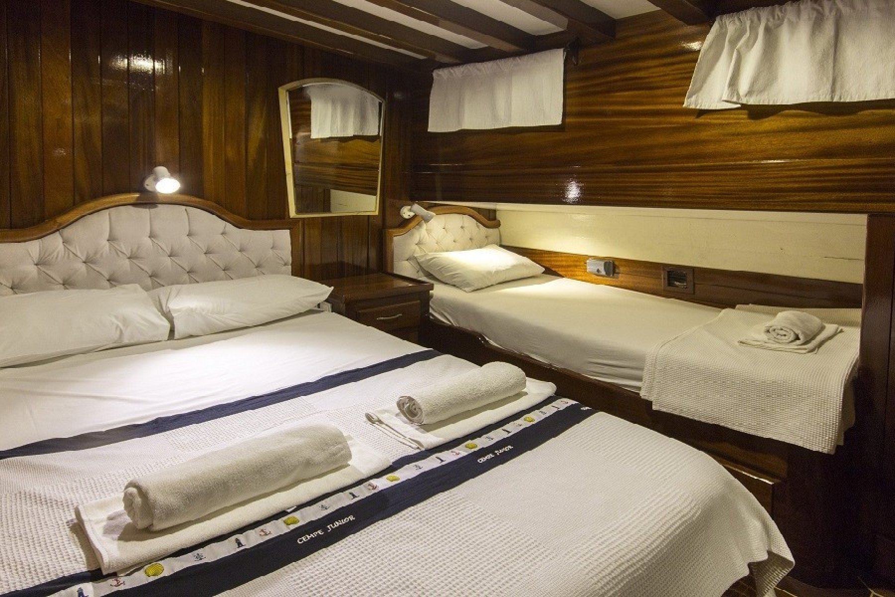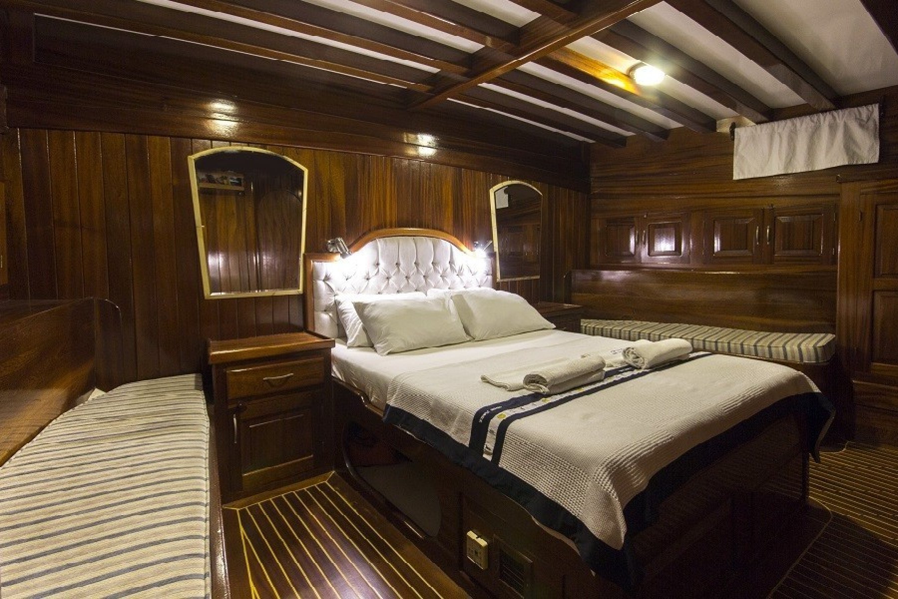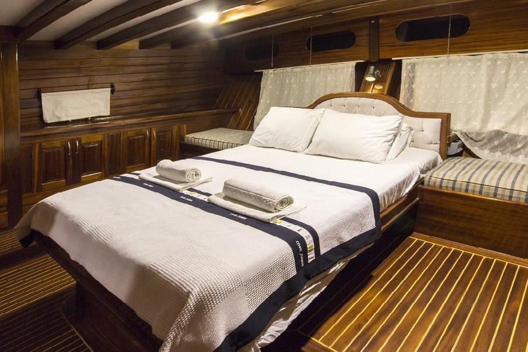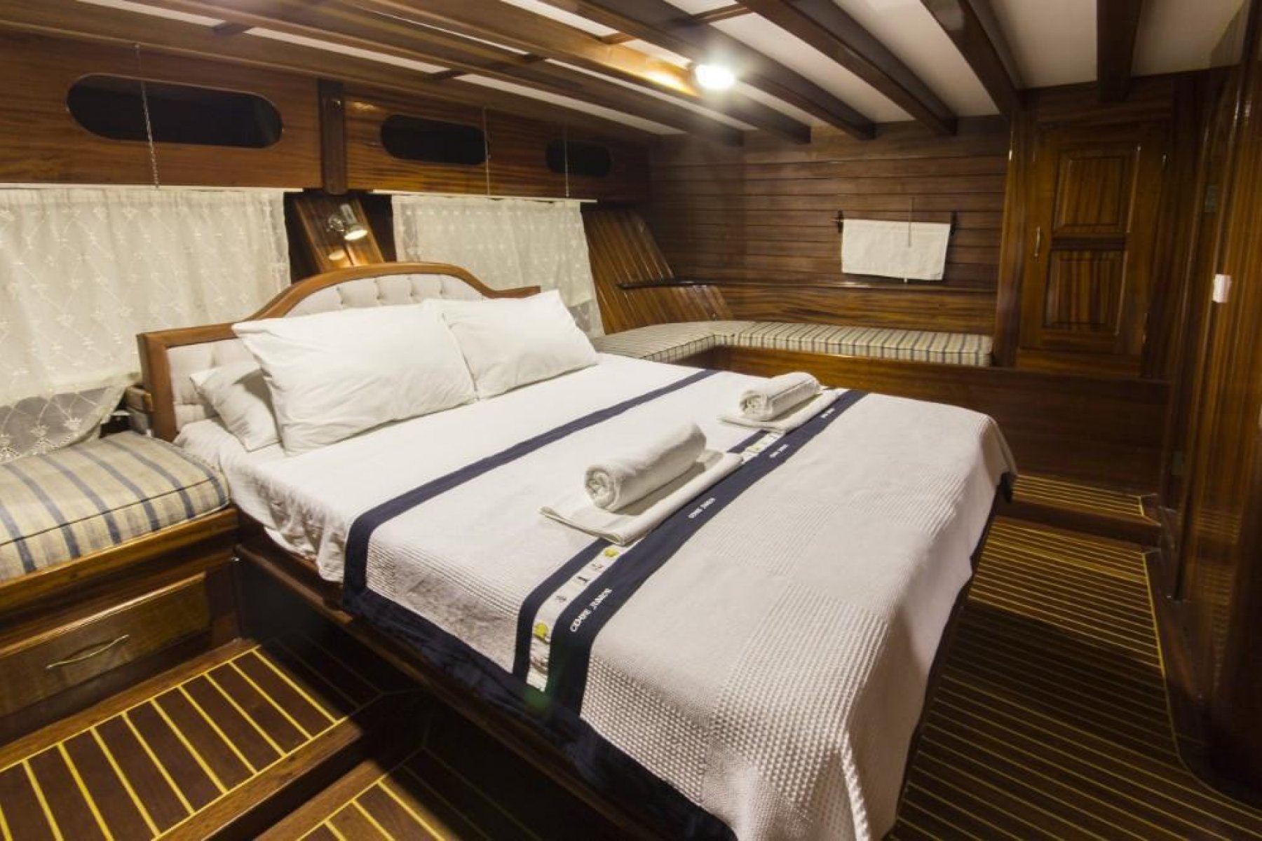 Gökova’nın sessiz koylarını keşfederken yüzmenin, güneşin ve denizin tadını çıkarabilirsiniz. 2 master kabin ve 4 adet çift + tek kişilik yataklı kabin ile konforlu bir konaklama mümkün. Hem açık hem kapalı yemek alanları ve geniş güverte, gün boyu ve akşam aktiviteleri için ideal bir ortam sağlar.