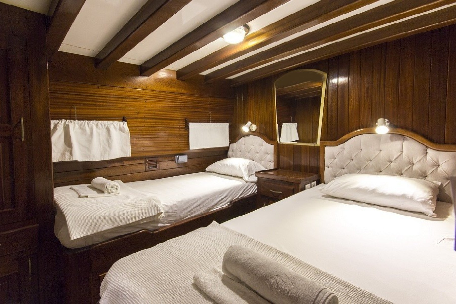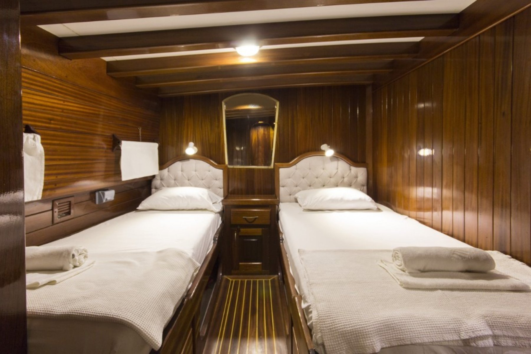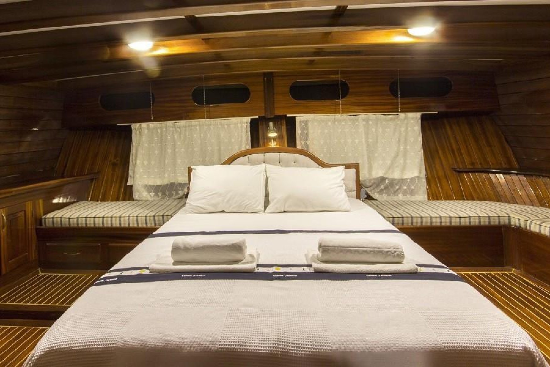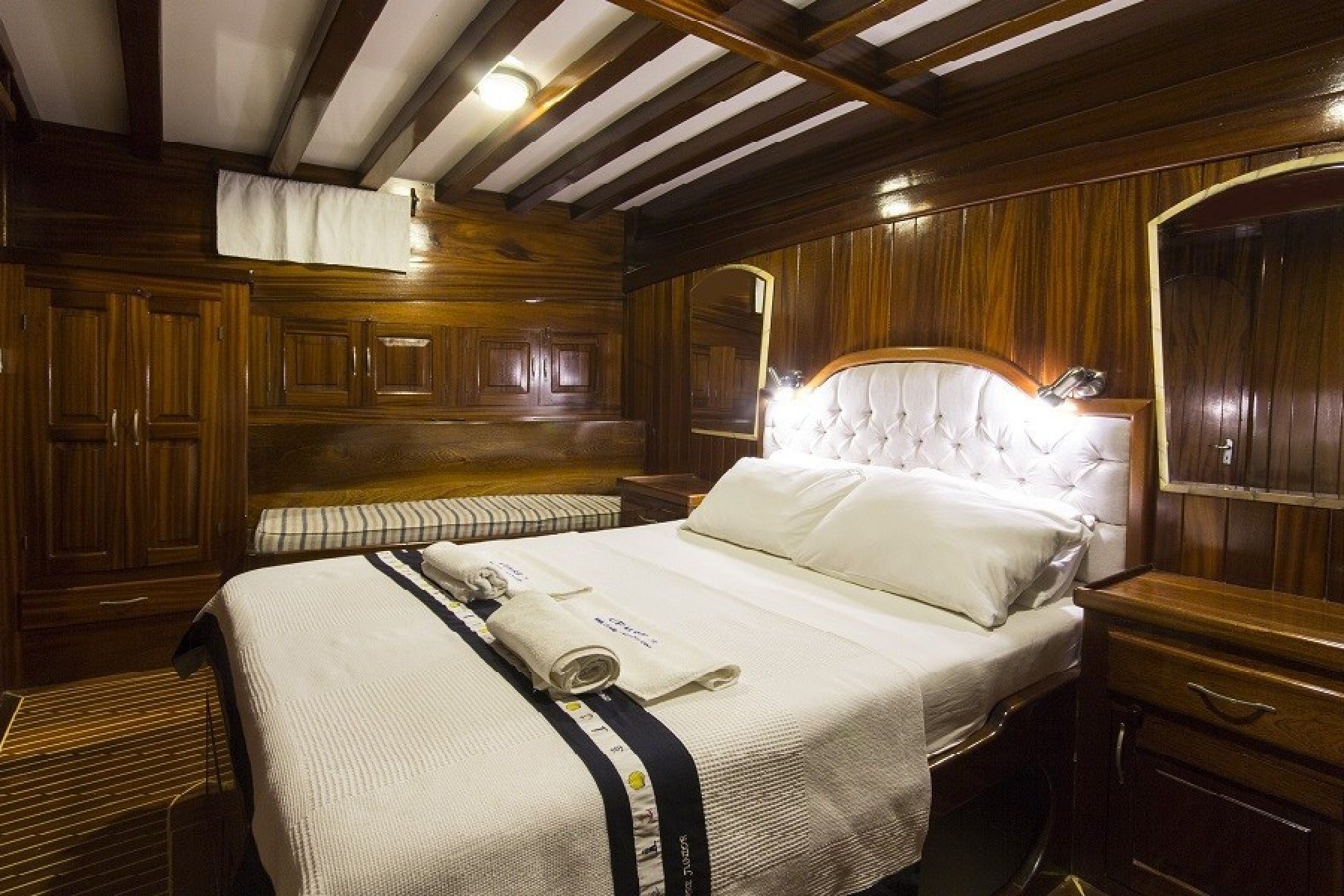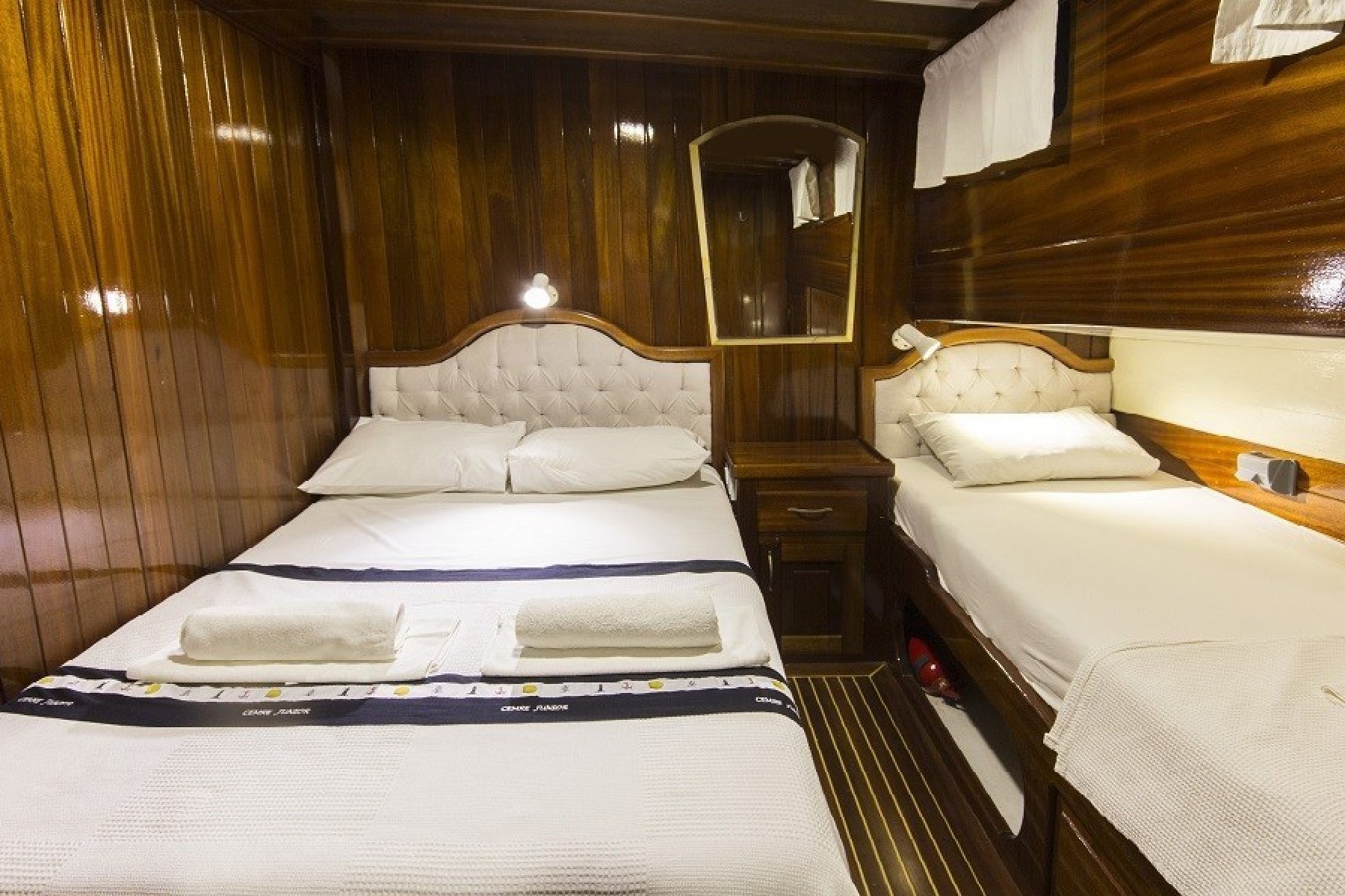 Gökova’nın sessiz koylarını keşfederken yüzmenin, güneşin ve denizin tadını çıkarabilirsiniz. 2 master kabin ve 4 adet çift + tek kişilik yataklı kabin ile konforlu bir konaklama mümkün. Hem açık hem kapalı yemek alanları ve geniş güverte, gün boyu ve akşam aktiviteleri için ideal bir ortam sağlar.