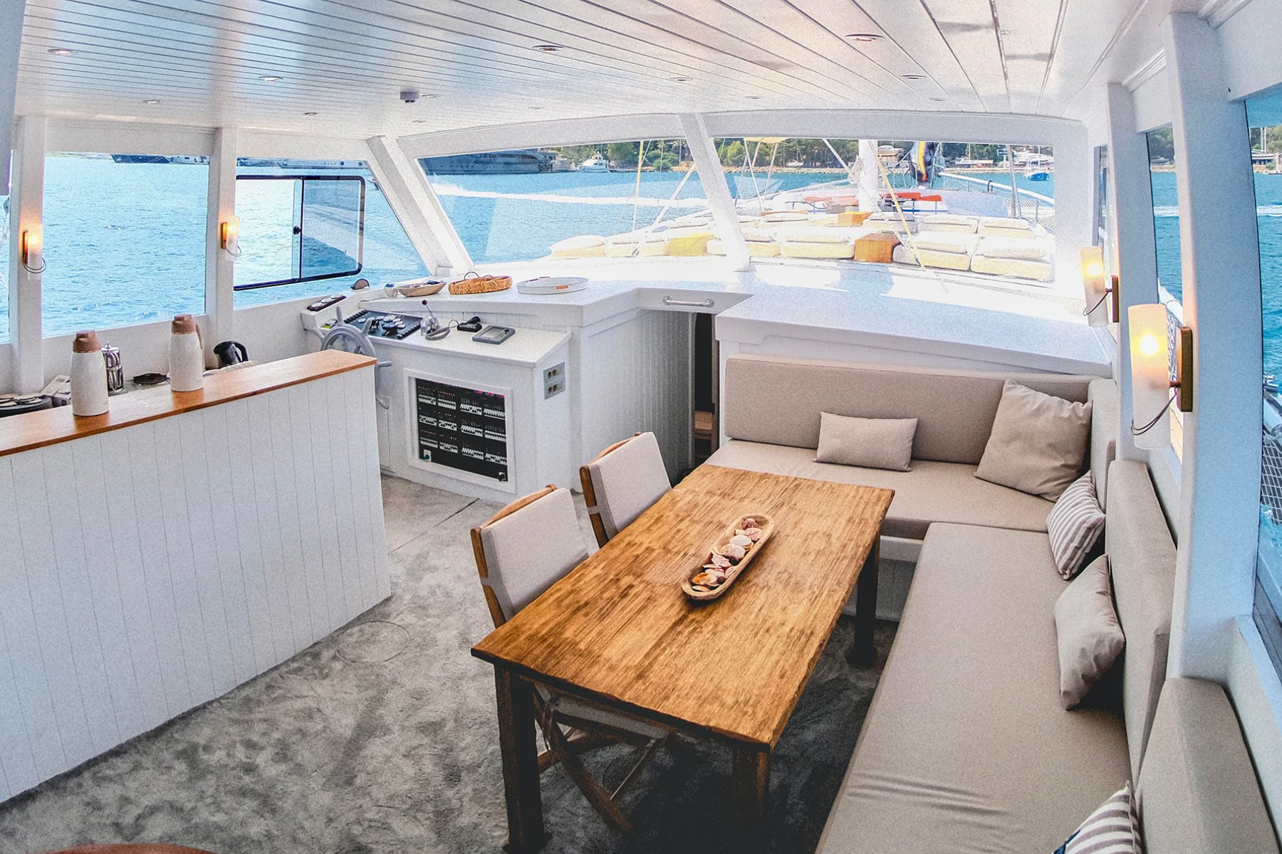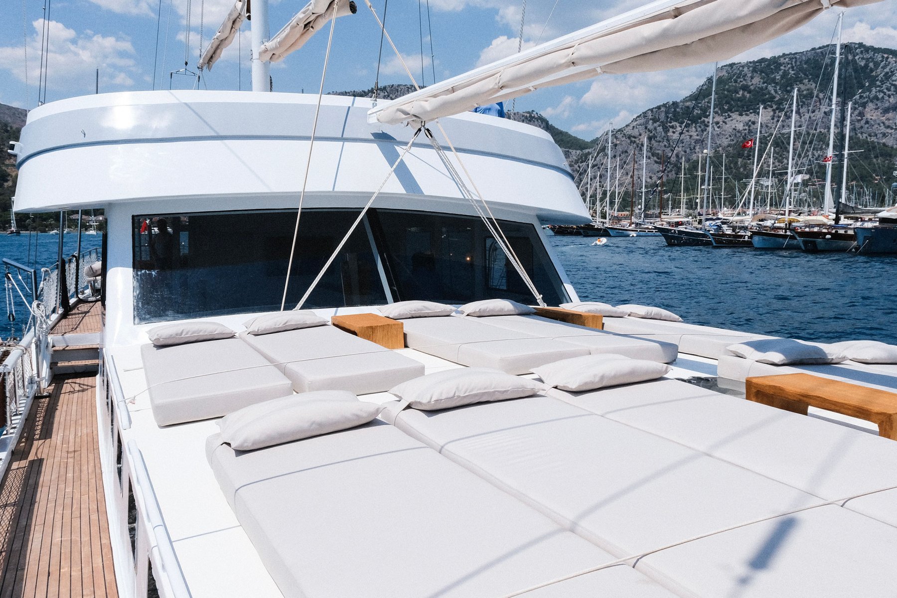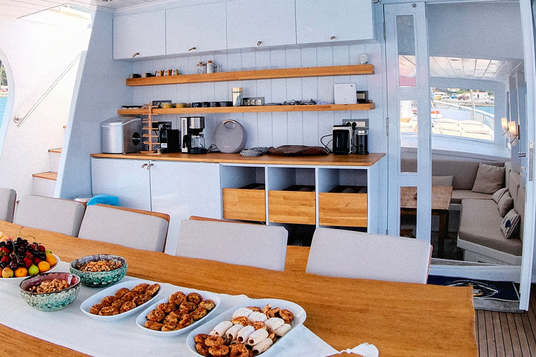 Tam donanımlı mutfakta kahve makineleri ile keyifli anlar yaşarken, kaptanımız ve mürettebatımız sizlere hizmet etmekten mutluluk duyacaktır. Haftalık kiralık göcek mavi yolculuk guletimiz, denizde unutulmaz bir tekne turu deneyimi sunmak için tüm detaylarıyla hazır durumdadır.