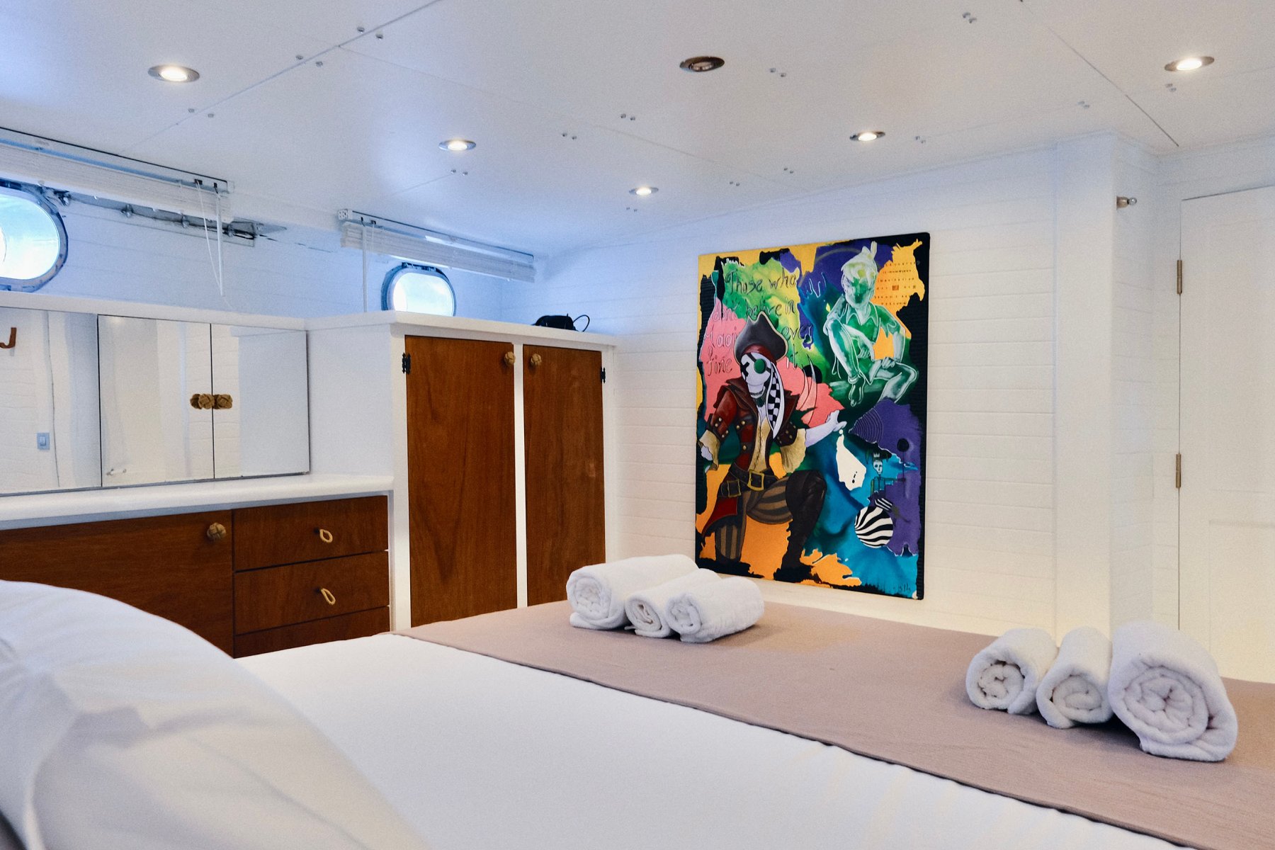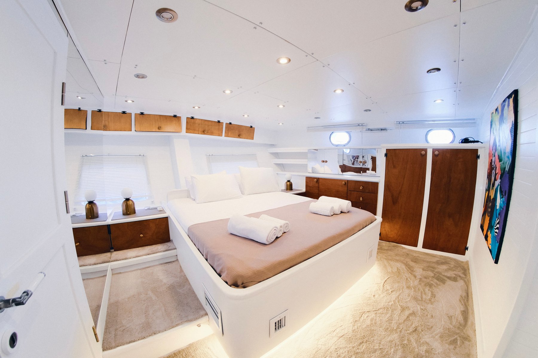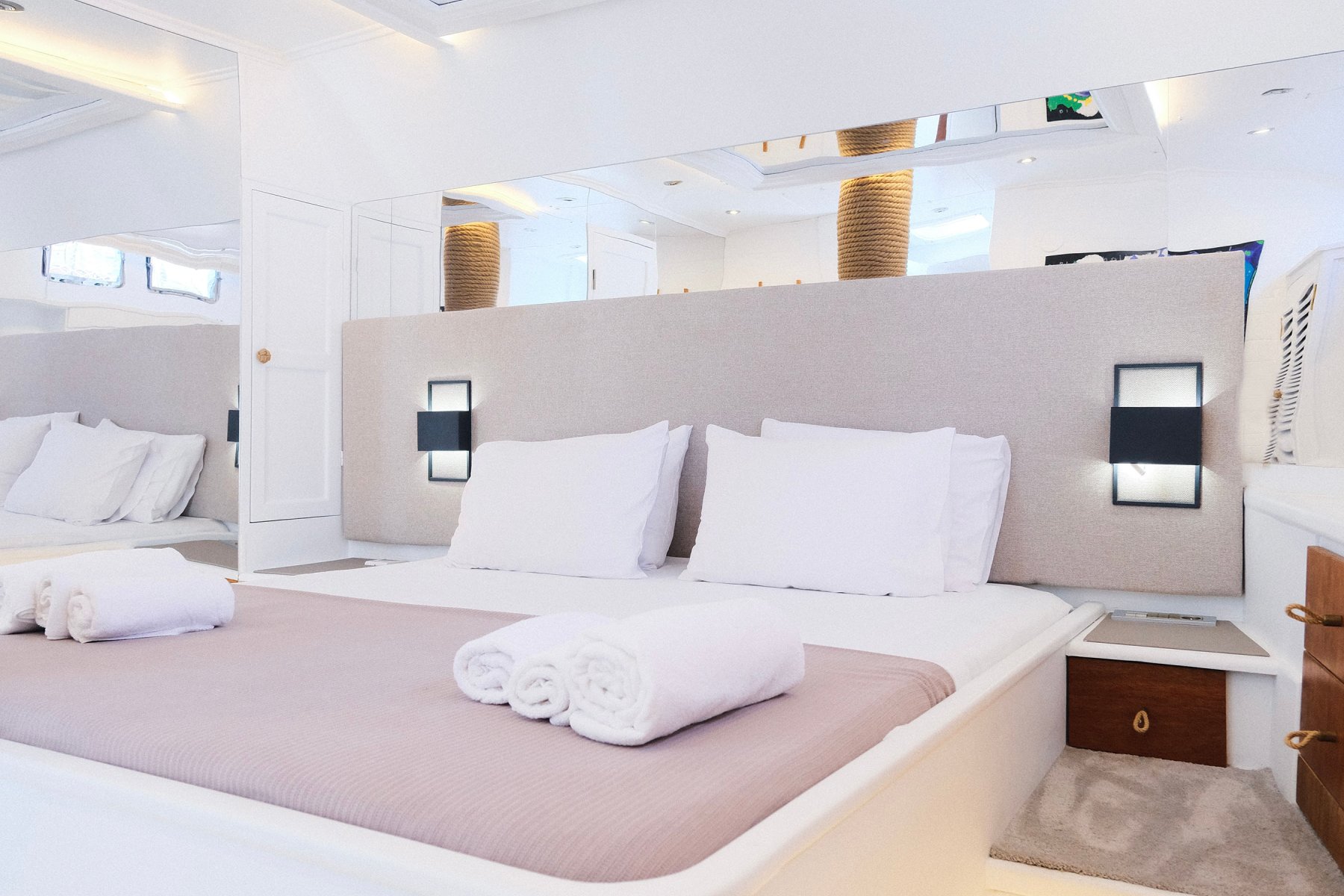 Teknemizde 1 kaptan, 1 aşçı ve 2 gemiciden oluşan toplam 4 kişilik mürettebat bulunmaktadır. Flybridge ve jakuzi gibi lüks donanımlar sayesinde rahat ve keyifli bir deniz tatili geçirebilirsiniz. Ayrıca çift taraflı denize giriş için süvari merdiveni, Wi-Fi, 3 kişilik kano, 2 kişilik stand up paddle board, tavla, okey ve oyun kartları gibi aktiviteler de mevcuttur.