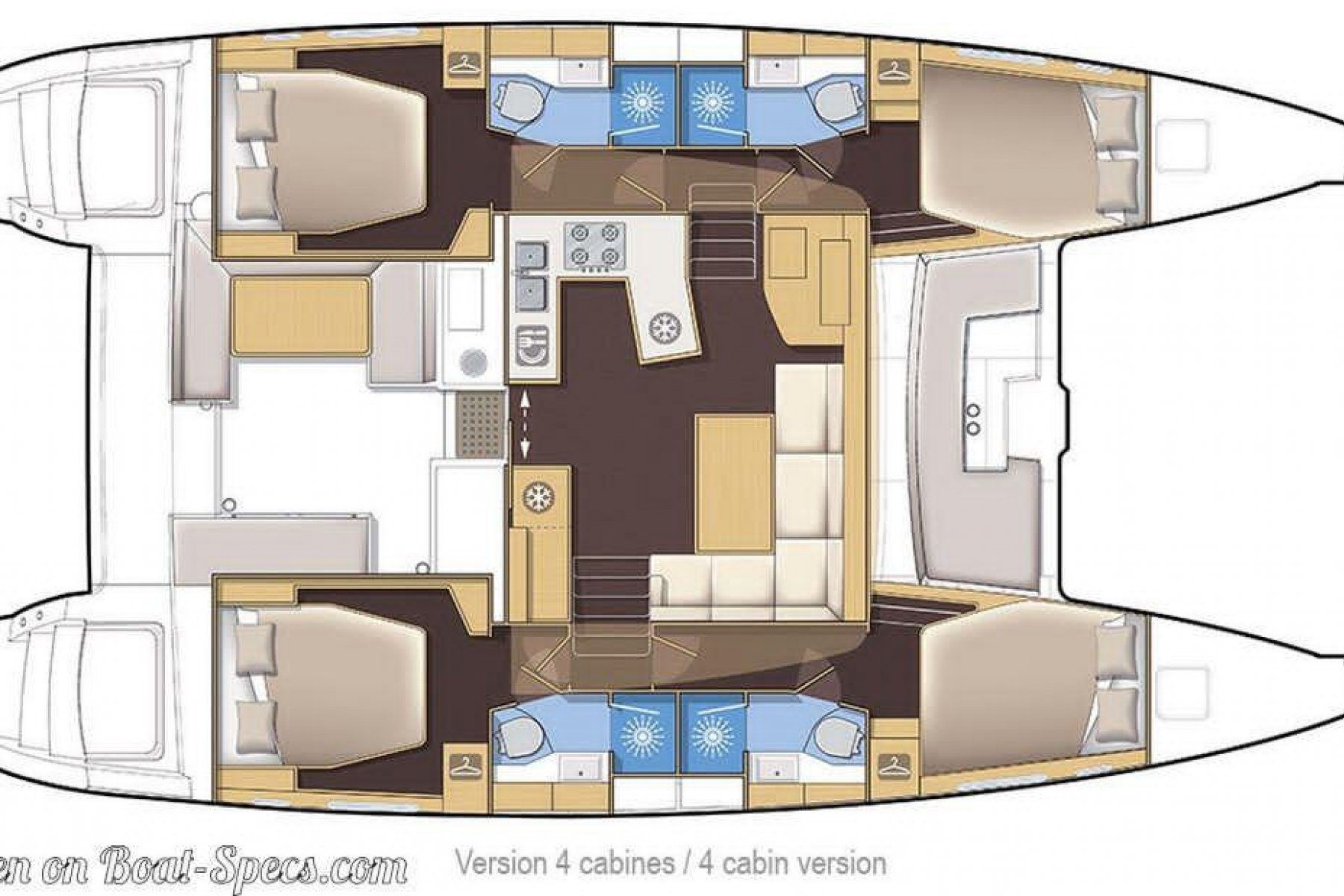 4 klimalı Kamarası ile bu kiralık lüks katamaran Laguna450f serisi olup 2019 yılında inşa edilmiştir. oldukça geniş ve ferah iç ve dış ortak alanlara sahiptir. her kamarasında duş ve banyo bulunan bu 8 kişilik katamaranımızla mavi yolculuğuk keyfini en üst düzeyde yaşayabilirsiniz.