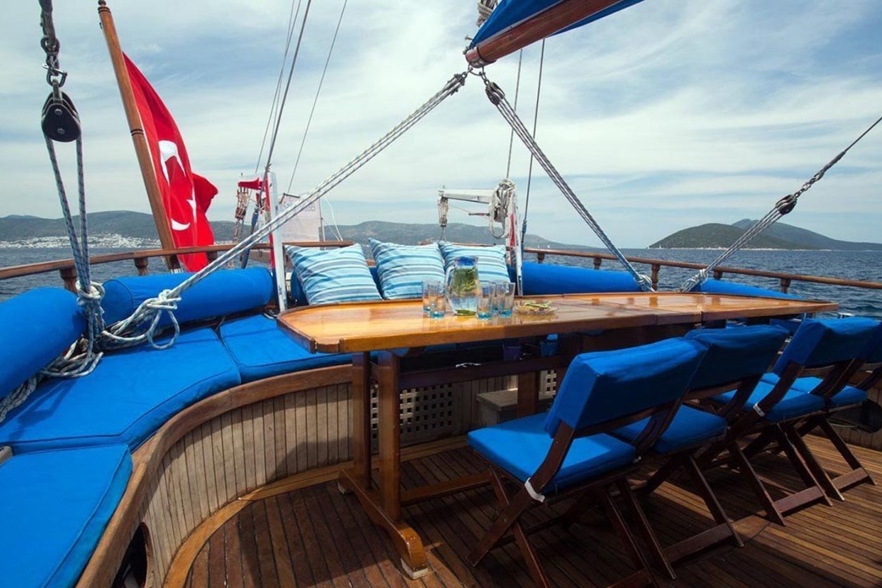 Deneyimli aşçımız dilediğiniz tüm menüleri oluşturmak, Akdeniz ve Ege'nin tüm lezzetlerini sizlere sunmak için sizlerin hizmetindedir. Tekne kiralama sürecinde dilediğiniz menüleri ve özel yemek isteklerini oluşturmak için Ofis personelimiz turunuz başlamadan önce sizlere irtibata geçecektir.