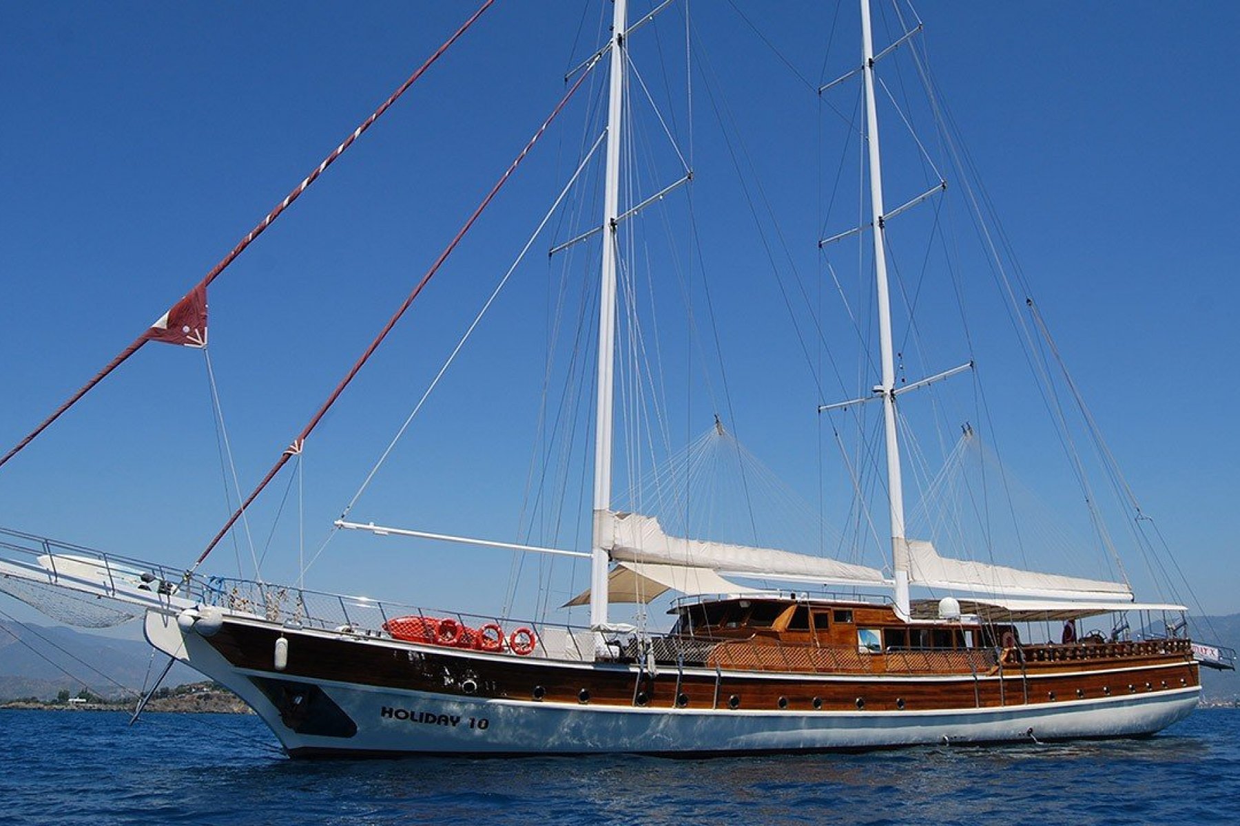 Lüks ve konforlu bir mavi yolculuk turu planlayan kalabalık arkadaş ya da aile grupları için uygun bu guletimiz değerli misafirlerimiz için 39 metre boyu, 8,20 metre eni ile unutulmaz bir yaz tatili fırsatı sunmaktadır. Bu oldukça geniş ve rahat yatımızda 10 klimalı kabin ve 22 yolcu kapasitesi bulunmaktadır. Fethiye çıkışlı mavi turlarımızda 5 kişiden oluşan deneyimli mürettebatımız servis kalitesini en üst seviyede tutarak siz değerli misafirlerimizin hizmetindedir.