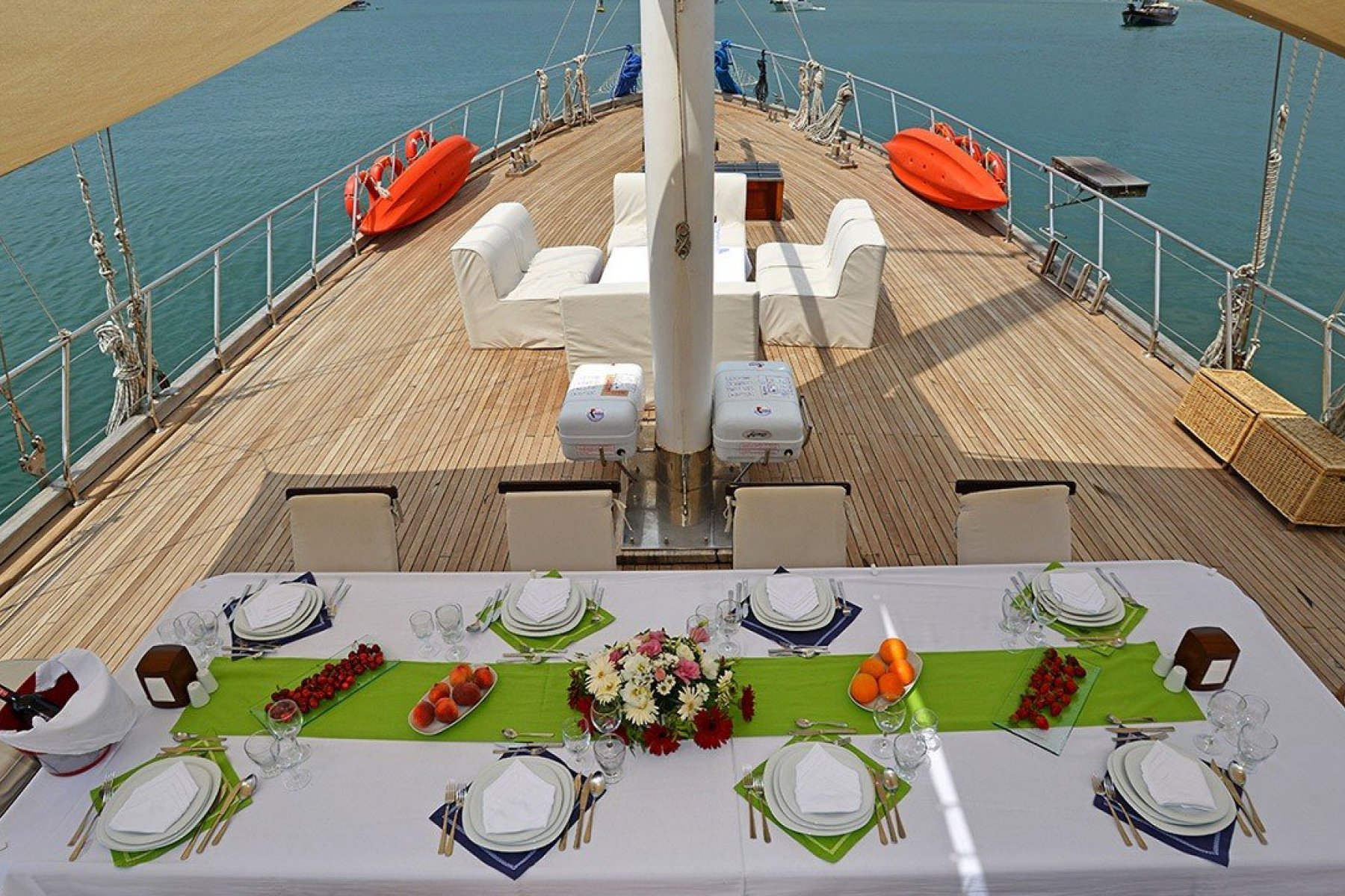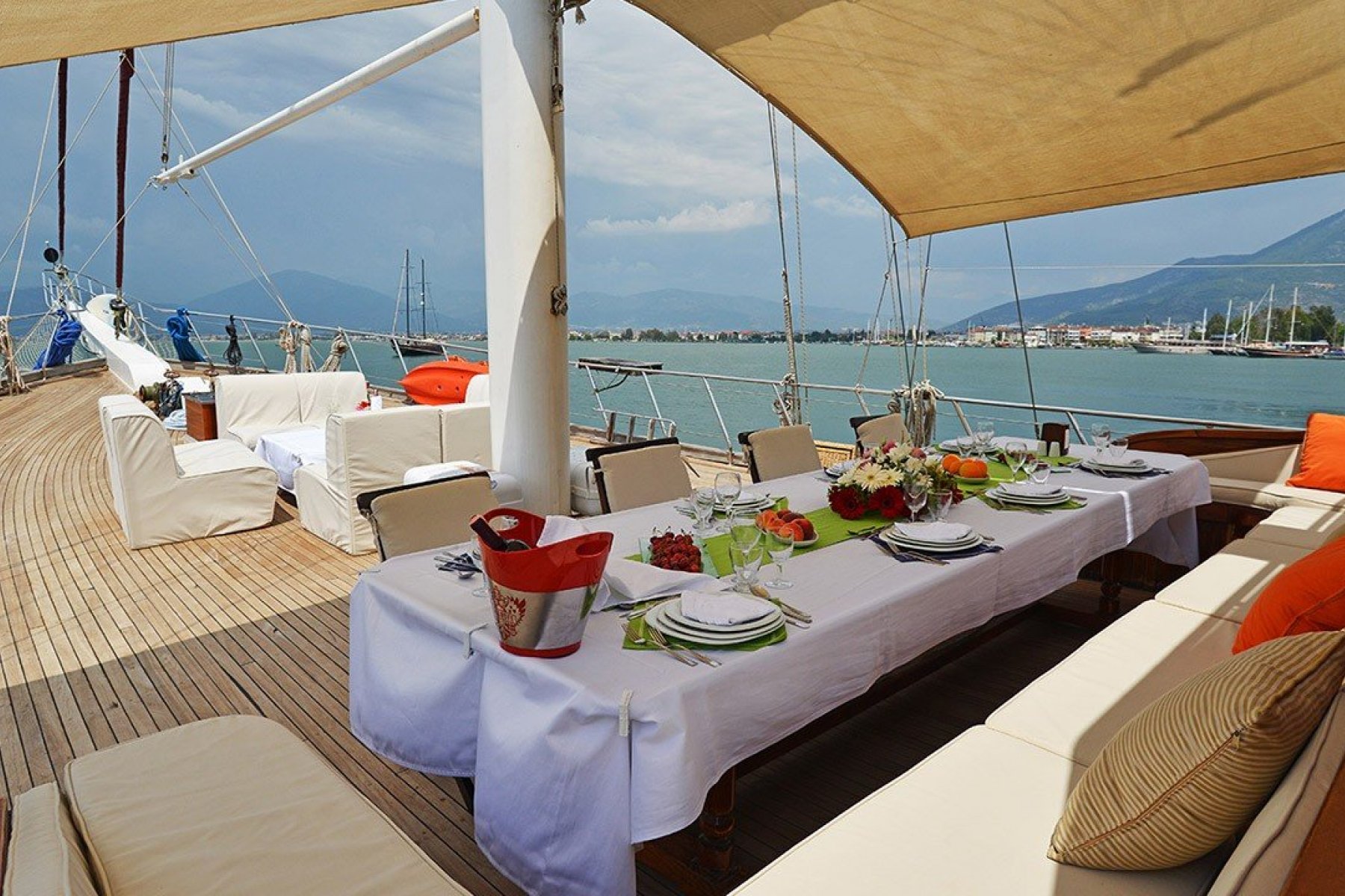 Deneyimli aşçımız dilediğiniz tüm menüleri oluşturmak, Akdeniz ve Ege'nin tüm lezzetlerini sizlere sunmak için sizlerin hizmetindedir. Tekne kiralama sürecinde dilediğiniz menüleri ve özel yemek isteklerini oluşturmak için Ofis personelimiz turunuz başlamadan önce sizlere irtibata geçecektir.