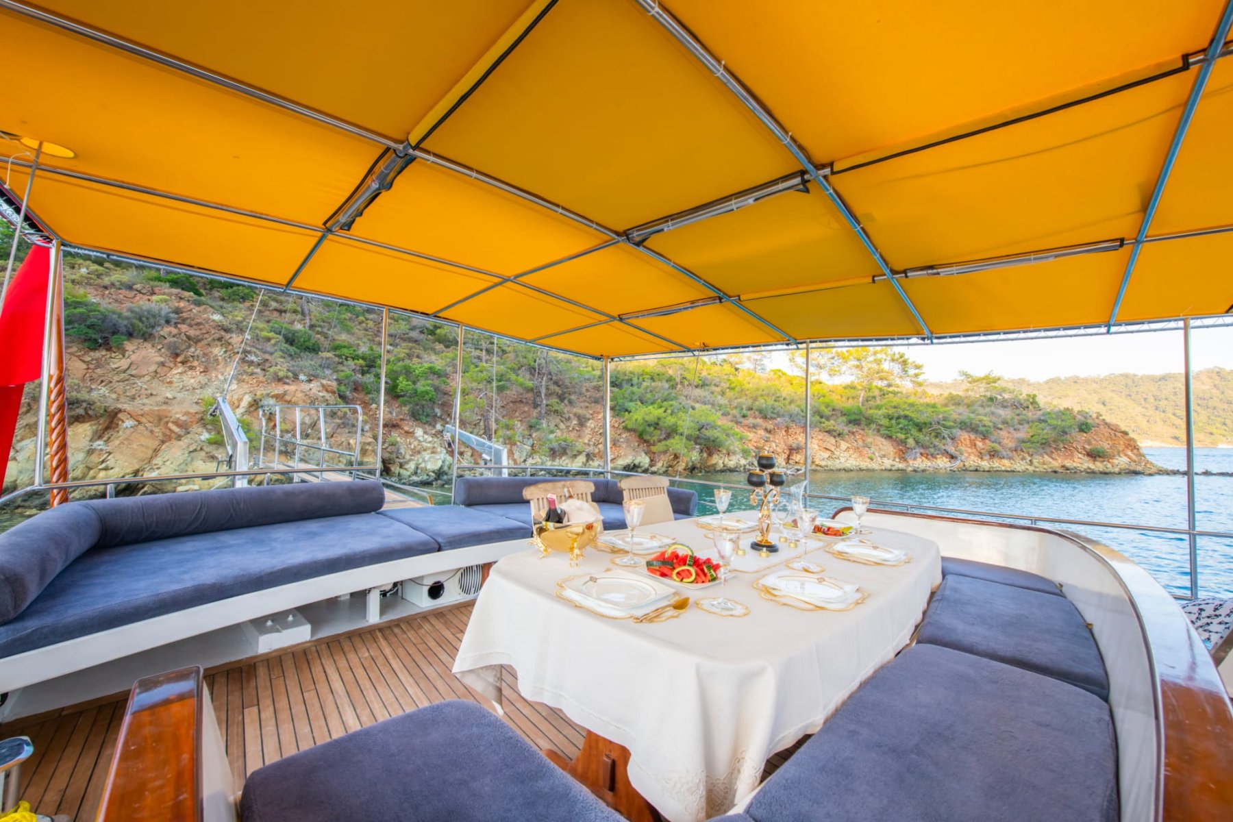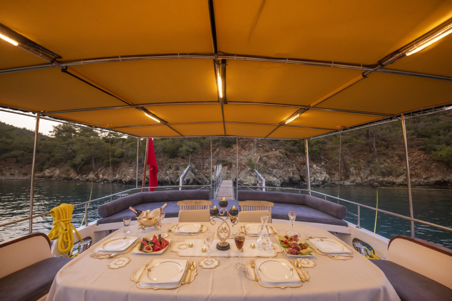 Deneyimli aşçımız dilediğiniz tüm menüleri oluşturmak, Akdeniz ve Ege'nin tüm lezzetlerini sizlere sunmak için sizlerin hizmetindedir. Tekne kiralama sürecinde dilediğiniz menüleri ve özel yemek isteklerini oluşturmak için Ofis personelimiz turunuz başlamadan önce sizlere irtibata geçecektir.