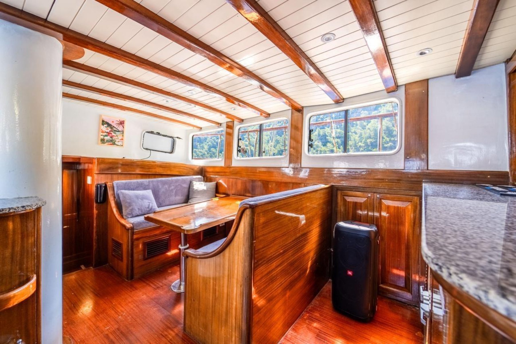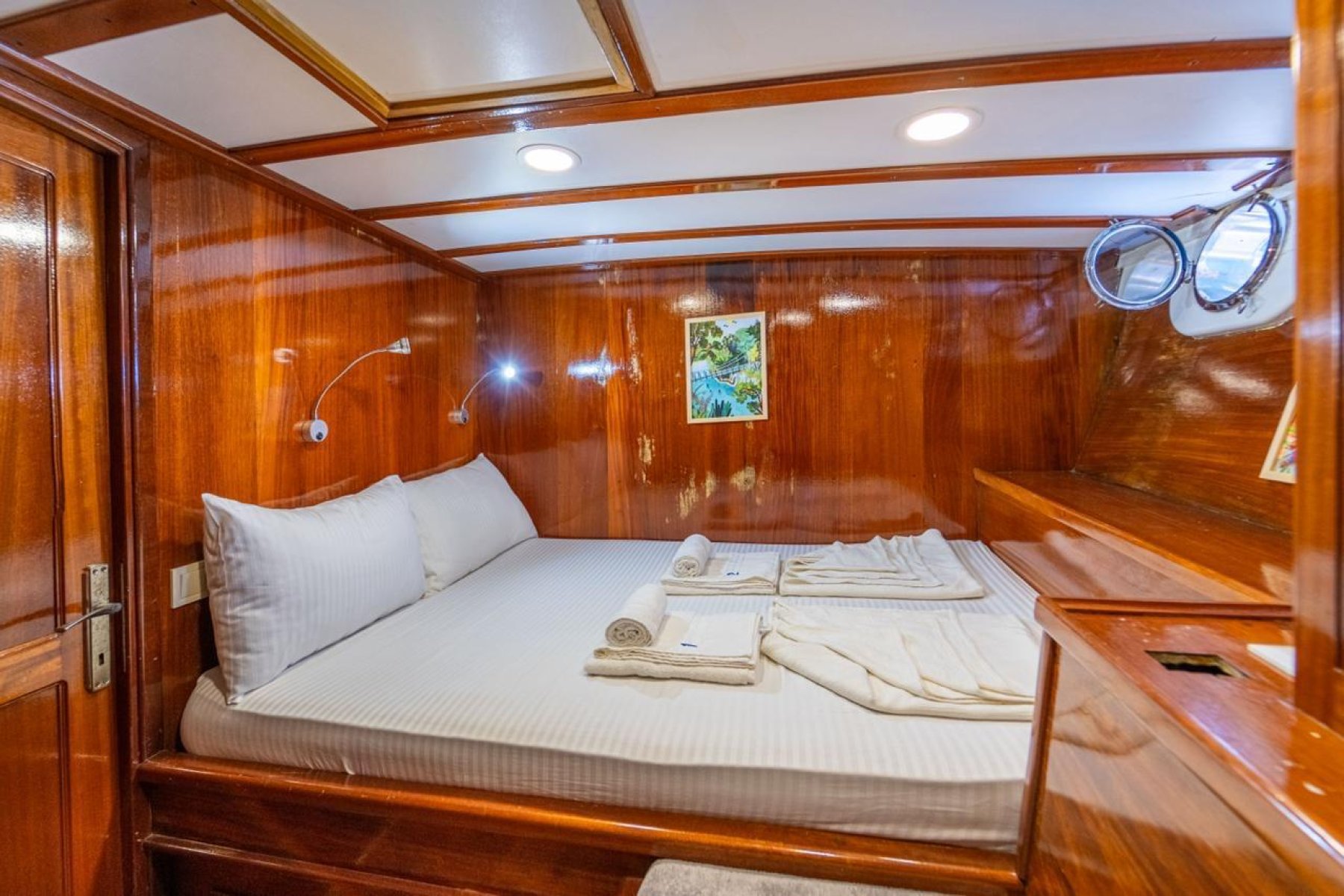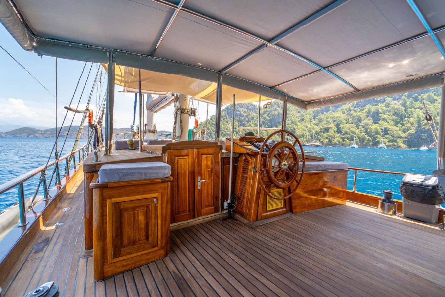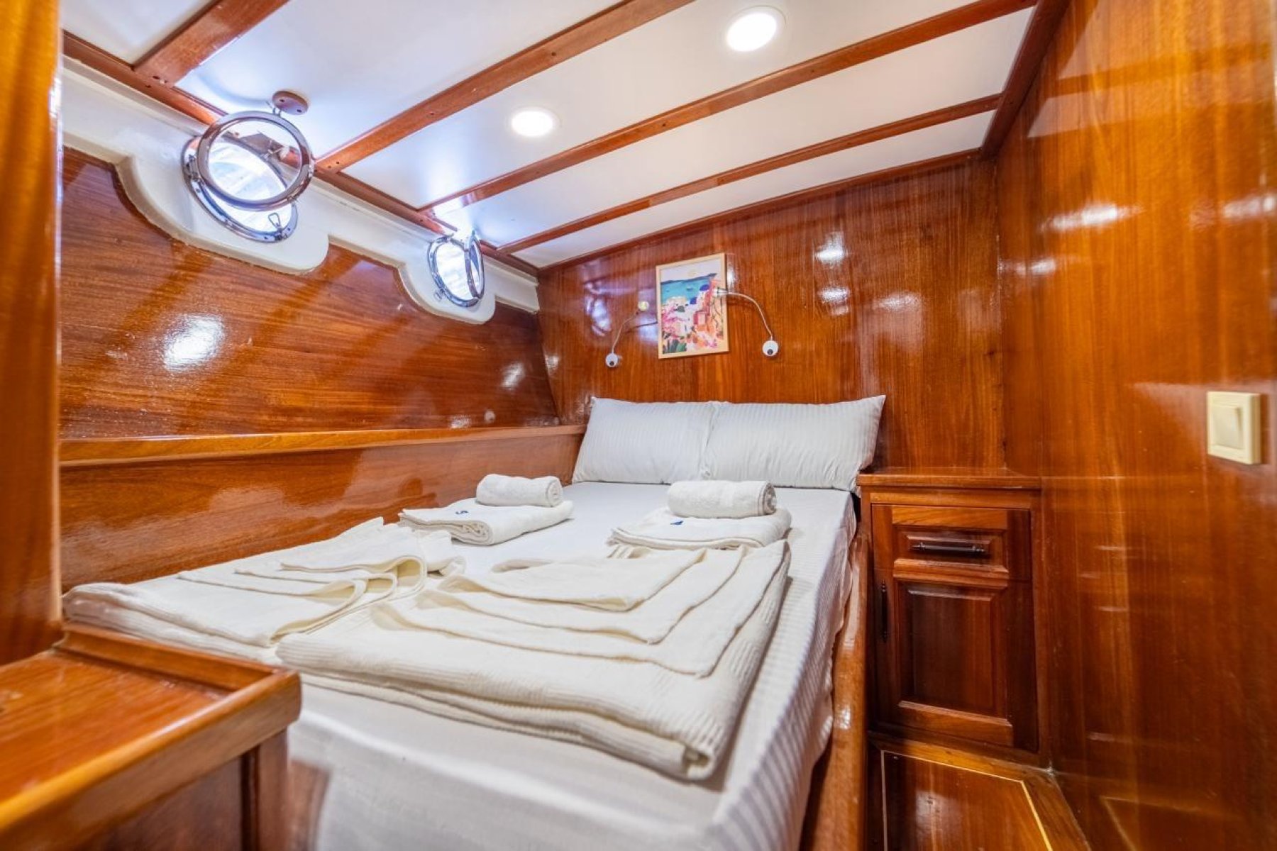 1991 yılında tamamlanan ve 2022'de revize edilen 3 kabinli guletimiz, Fethiye limanından hareketle Fethiye Göcek koylarında mavi tur severlere hizmet sunmaktadır. Fethiye Göcek bölgesi, muhteşem koyları ve büyüleyici bakir doğasıyla dünyanın en popüler tatil beldelerinden biri haline gelmiştir. Standart Plus Gulet sınıfındaki gulet, toplamda 3 adet double kabinle donatılmıştır ve toplamda 6 kişi konaklama kapasitesine sahiptir. Gulet, Temmuz ve Ağustos aylarında haftalık kiralama yapmaktadır, diğer aylarda ise haftalık kiralama zorunluluğu bulunmamaktadır. Teknenin tam boyu 20 metre, genişliği ise 5.70 metredir. Teknede 1 kaptan, 1 aşçı ve 1 gemici olmak üzere toplamda 3 personel bulunmaktadır. Yüksek sezon dışındaki aylarda minimum 3 gece ve üzeri kiralama yapılabilmektedir. Giriş saati 14:00, çıkış ise son geceyi takip eden sabah 09:30'dur. Gulet teknemizde Klima, wifi, kano, paddleboard, su oyuncakları, jeneratör gibi donanımlar bulunmaktadır ve mavi yolculuk tekne tatiliniz için her detay düşünülmüştür. Tekne tatili öncesi aşçımız, alışveriş listenizi planlamak için sizinle iletişime geçmektedir. Yiyecek malzemelerinizi kendiniz temin edebileceğiniz gibi, tekne ekibimiz de sizin adınıza temin edebilir. Sevdikleriniz ve ailenizle birlikte muhteşem anılar biriktireceğiniz bir tekne tatili için bize ulaşmanız yeterlidir. Doğru analiz, doğru tekne ve doğru hizmet misyonuyla çıktığımız yolda, sizlere yat kiralama hizmeti vermekten mutluluk duyarız.