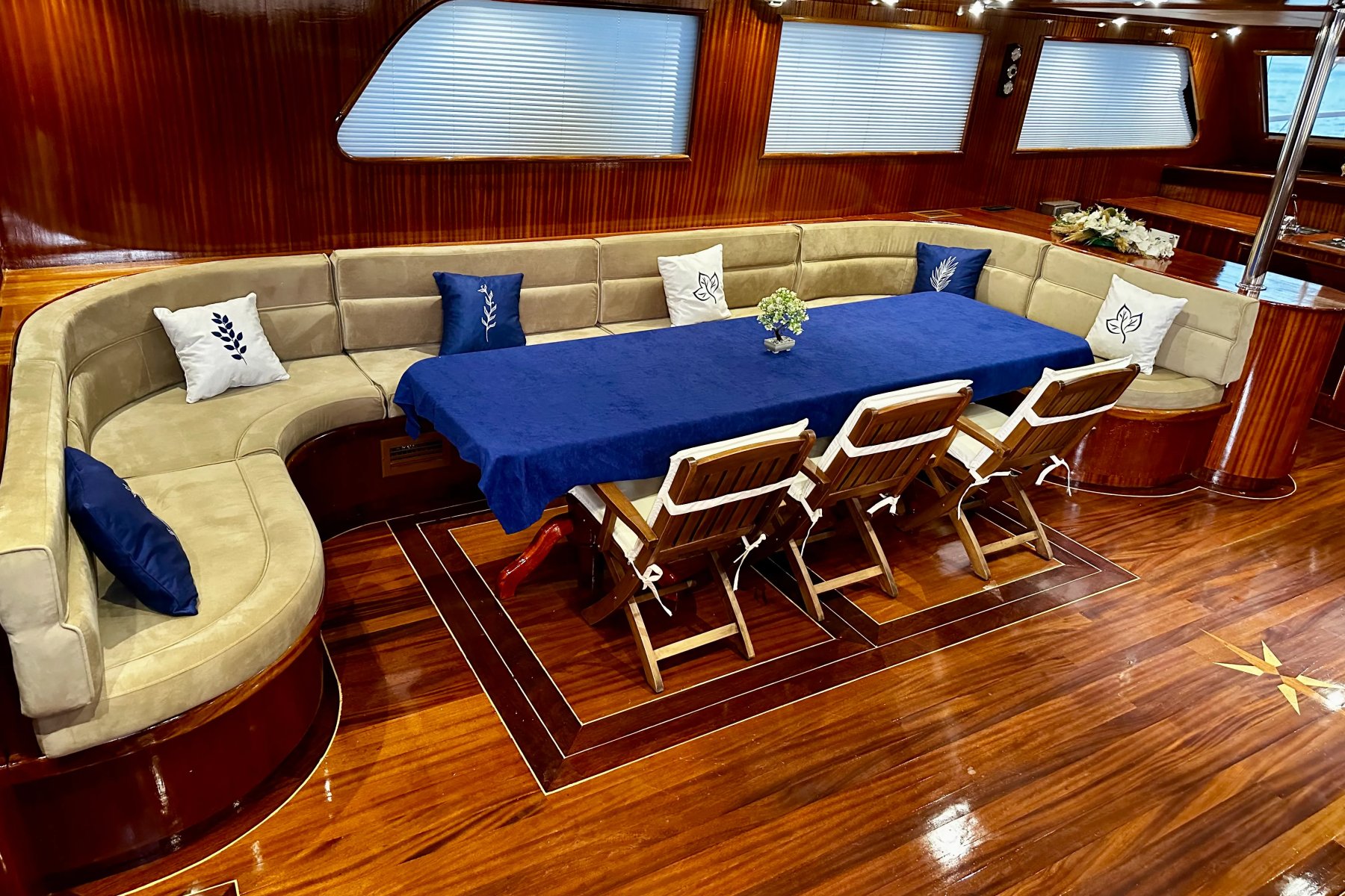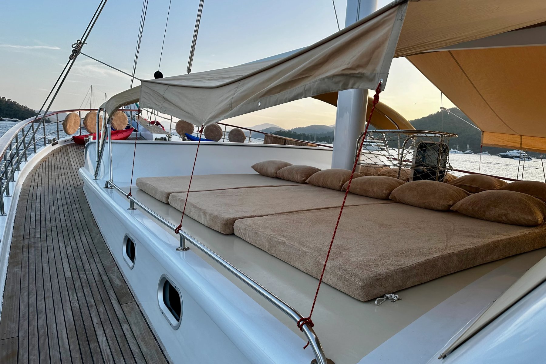 Marmaris çıkışlı mavi yolculuk planlayanlar için tasarlanan Kocaoğlan 1, zarif detayları, geniş yaşam alanları ve üstün donanımıyla unutulmaz bir Marmaris tekne tatili deneyimi sunar. 32 metre uzunluğundaki bu delüks gulet, 2 master, 2 double ve 2 triple kabiniyle toplam 12 kişilik seçkin misafir grubunu ağırlayabilecek kapasitededir.Lüks Ve Konforu Bir Araya Getiren Gulet Tasarımı