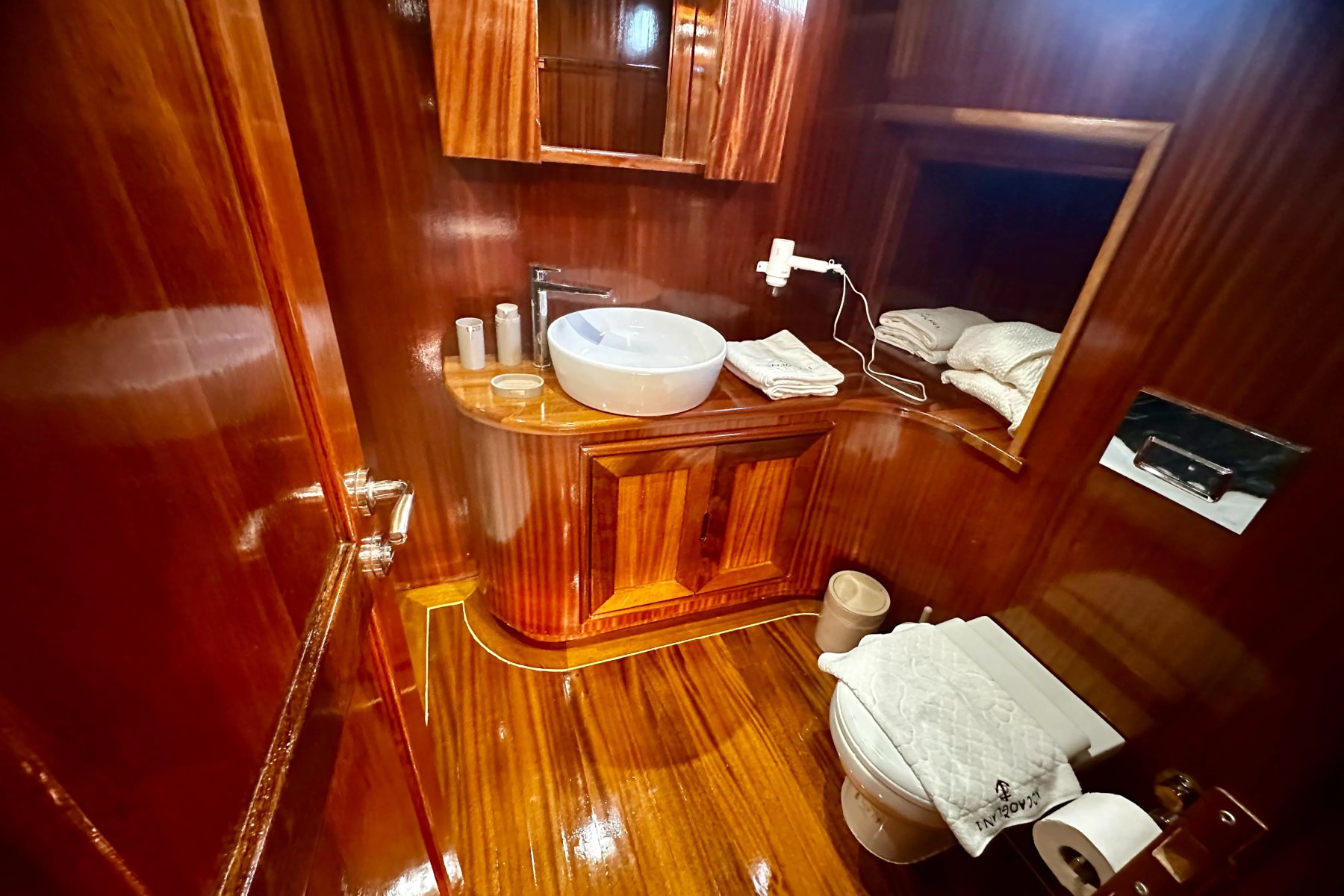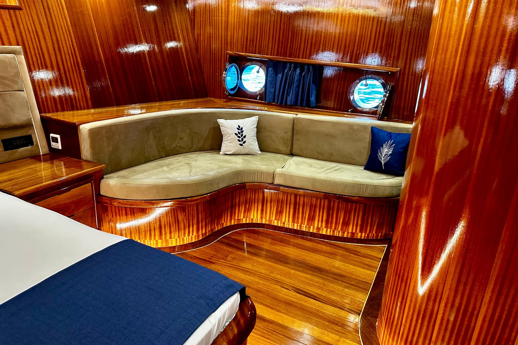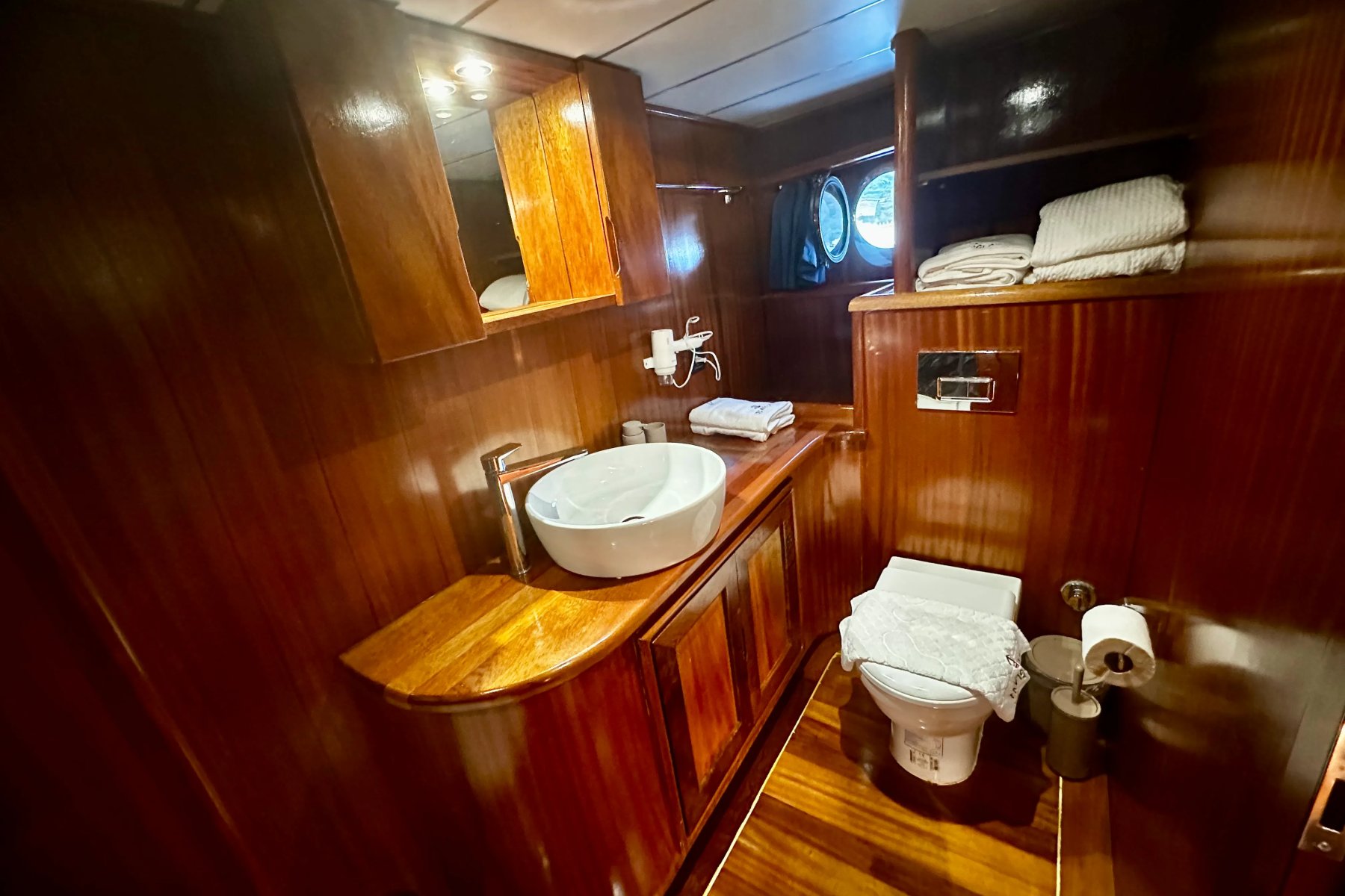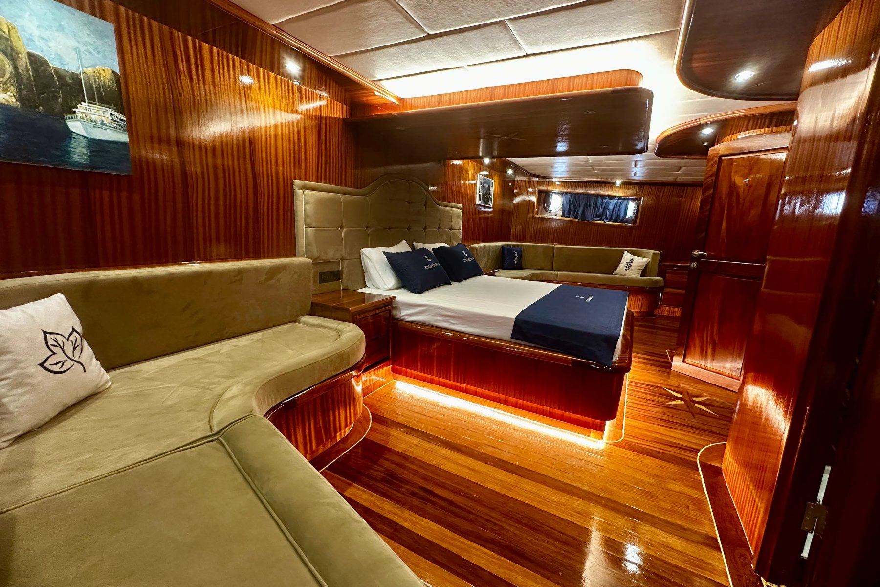 Her kabin, konforu ön planda tutan modern detaylarla donatılmıştır. Duşakabinli banyo, özel WC ve 24 saat hizmet veren klima sistemi ile misafirler kendilerini özel hisseder. İç mekanlar ferah, aydınlık ve deniz manzarasının keyfini çıkaracak şekilde tasarlanmıştır.Turunuz boyunca kendinizi sadece doğaya ve huzurlu bir tatile bırakabileceğiniz, rahatlayabileceğiniz bir donanım seviyesi gözetilerek inşa edilen teknemizde tek düşünmeniz gereken hiçbir şey düşünmemek !