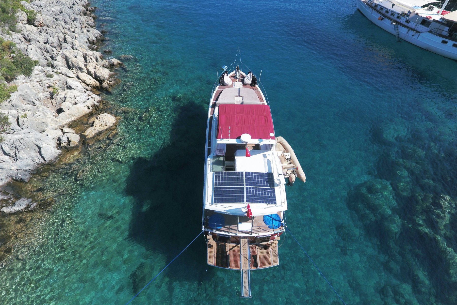 Motoryatımız, sunduğu lüks ve konfor ile diğerlerinden ayrılıyor. Her detayı düşünülmüş tasarımı ve sunduğu imkanlarla, sevdiklerinizle birlikte eşsiz bir mavi yolculuk deneyimi yaşamanız için en doğru tercih olacaktır.