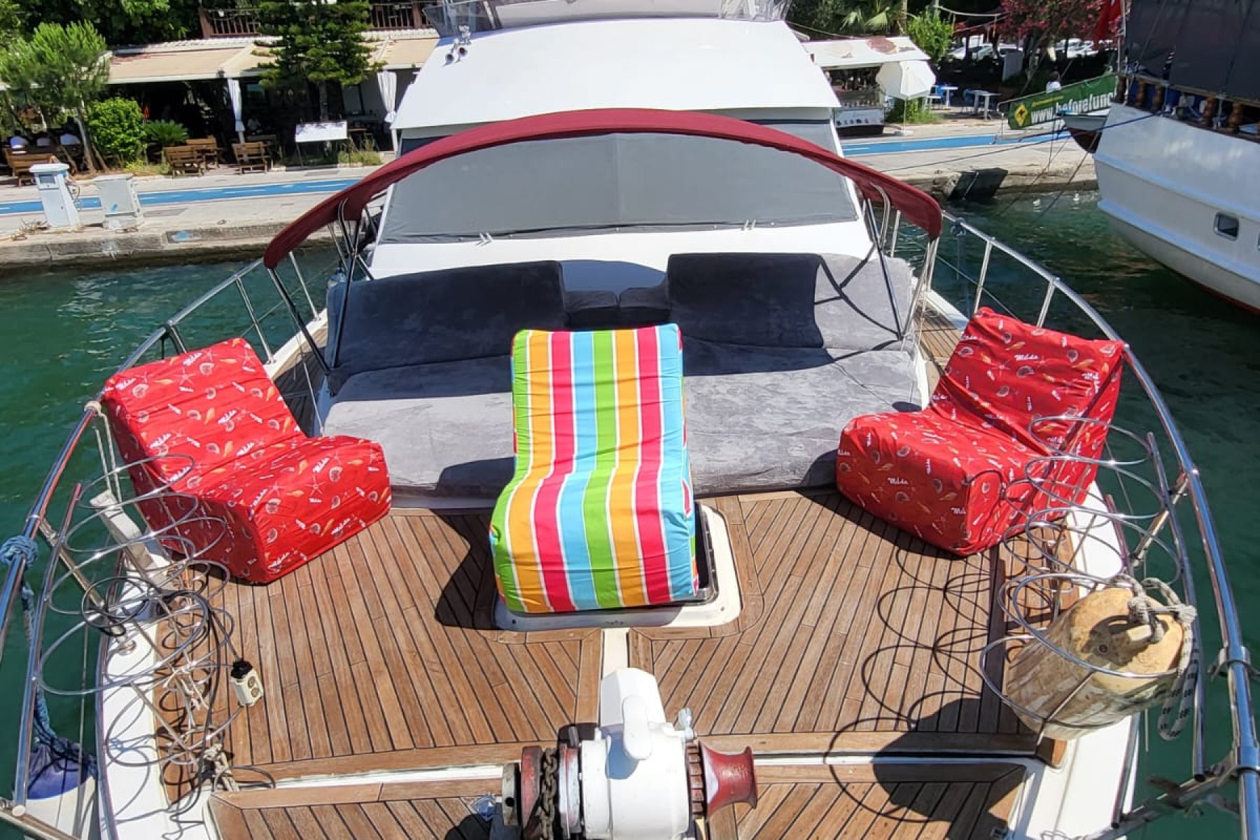 Mavi suların huzuruyla buluşmak, sevdiklerinizle unutulmaz anılar biriktirmek için ideal bir seçenek sunuyoruz: 18 metre uzunluğundaki 6 kişilik motoryat ! Hem arkadaş gruplarına hem de ailelere uygun bu harika motoryat, size konfor ve eğlence dolu bir tatil vaat ediyor.
