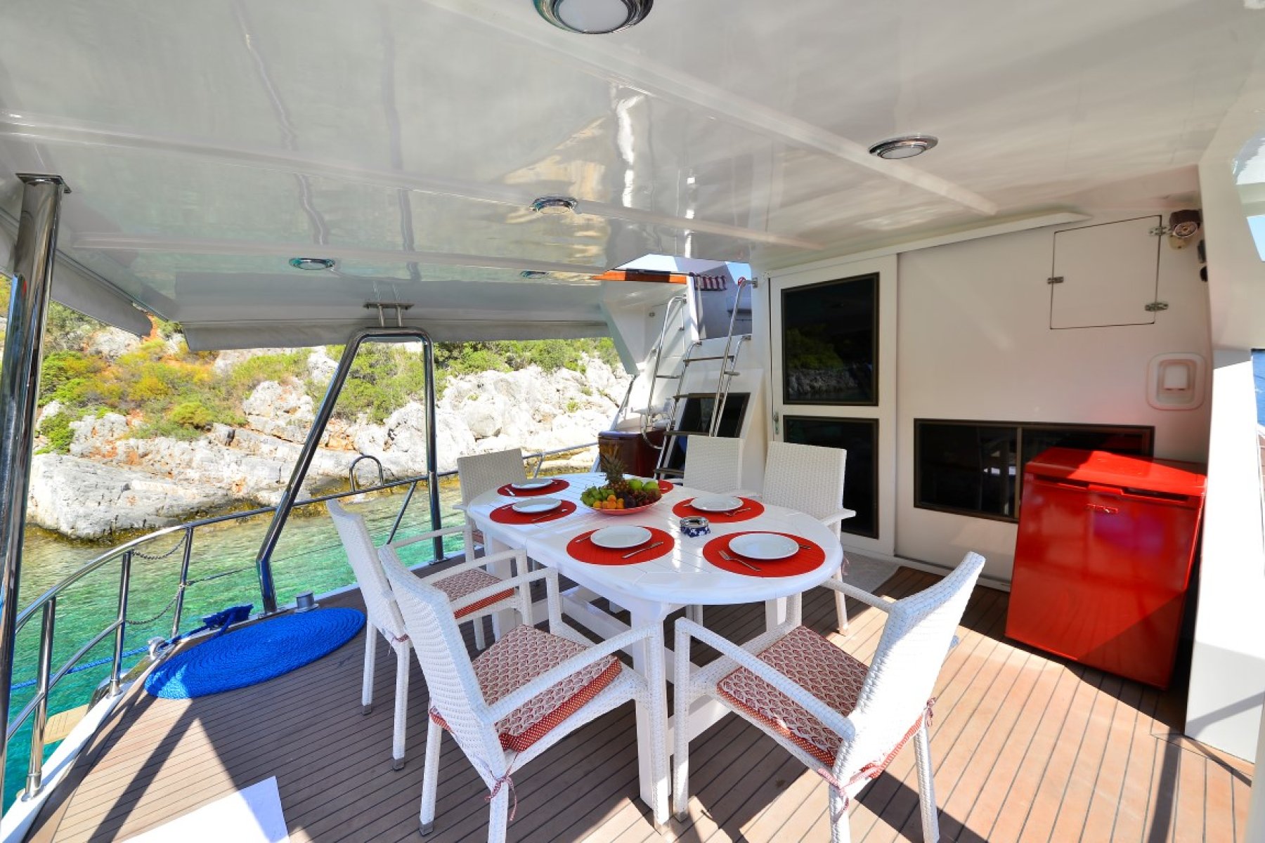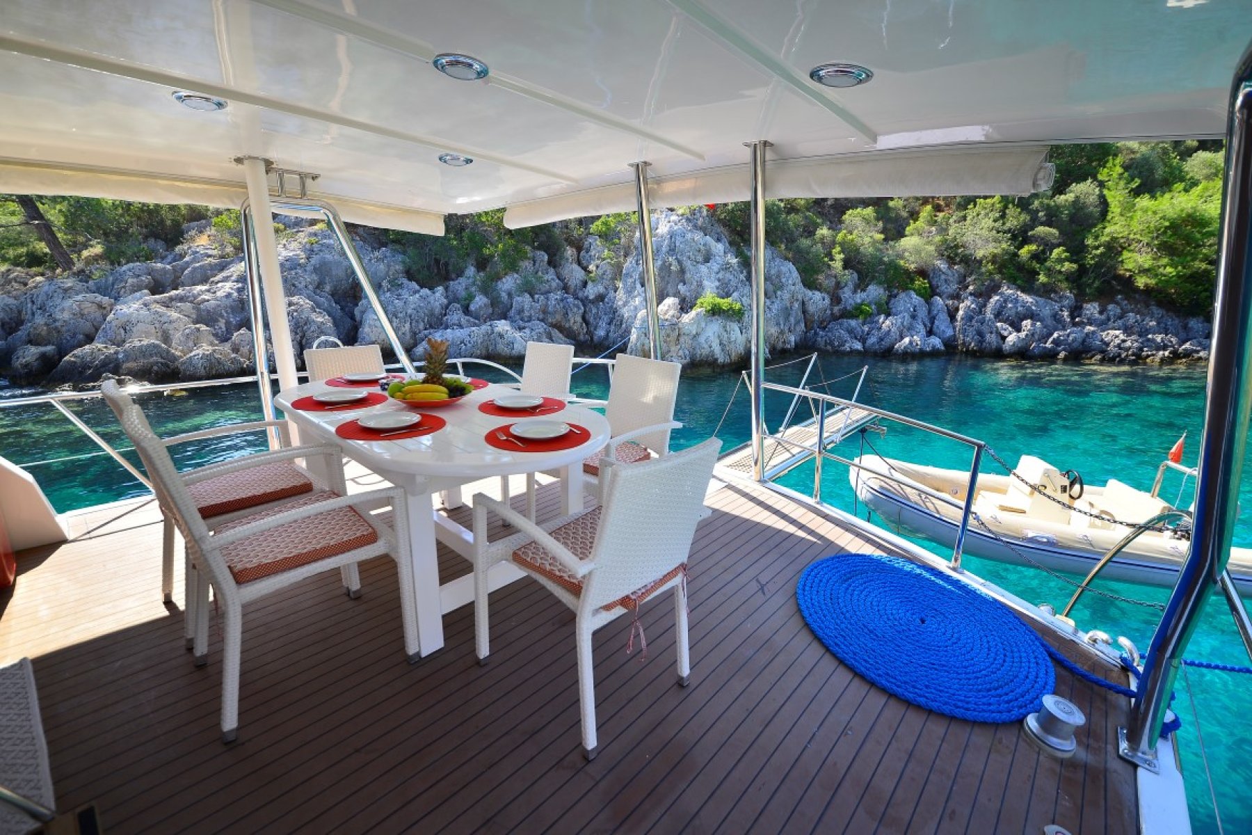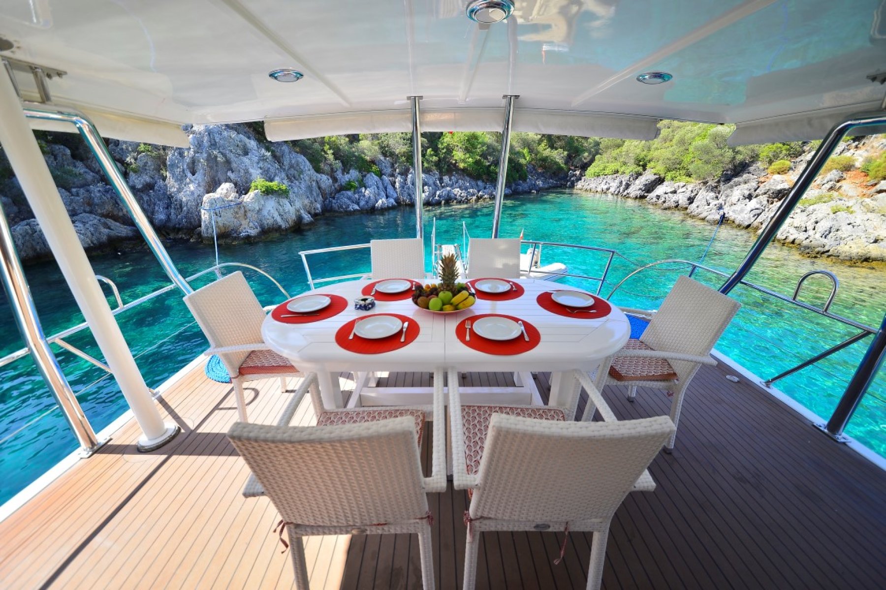 Deneyimli aşçımız dilediğiniz tüm menüleri oluşturmak, Akdeniz ve Ege'nin tüm lezzetlerini sizlere sunmak için sizlerin hizmetindedir. Tekne kiralama sürecinde dilediğiniz menüleri ve özel yemek isteklerini oluşturmak için Ofis personelimiz turunuz başlamadan önce sizlere irtibata geçecektir.
