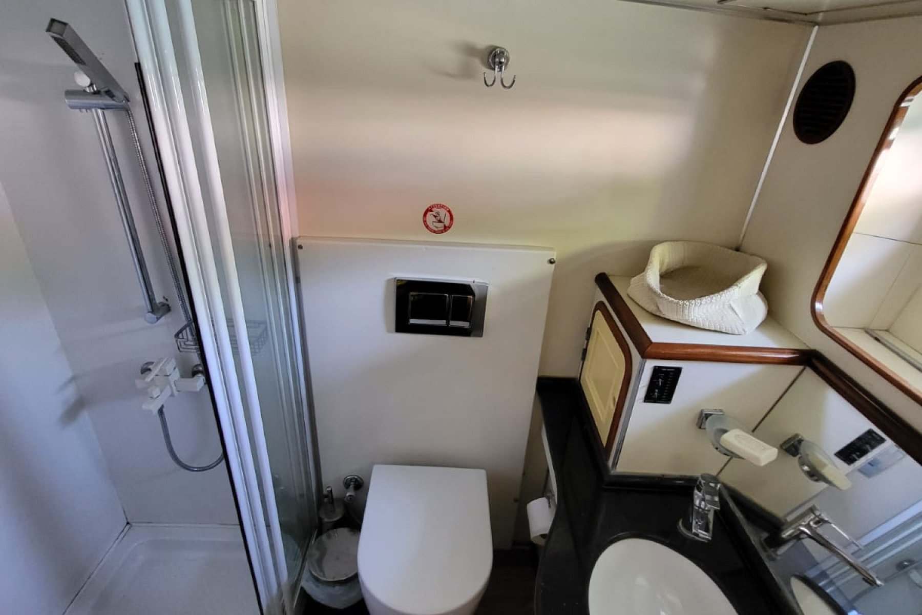 Double ve twin kabinlerin tuvaletleri ayrı, ancak duşakabinleri ortaktır. Bu, size hem mahremiyet hem de pratiklik sağlar.