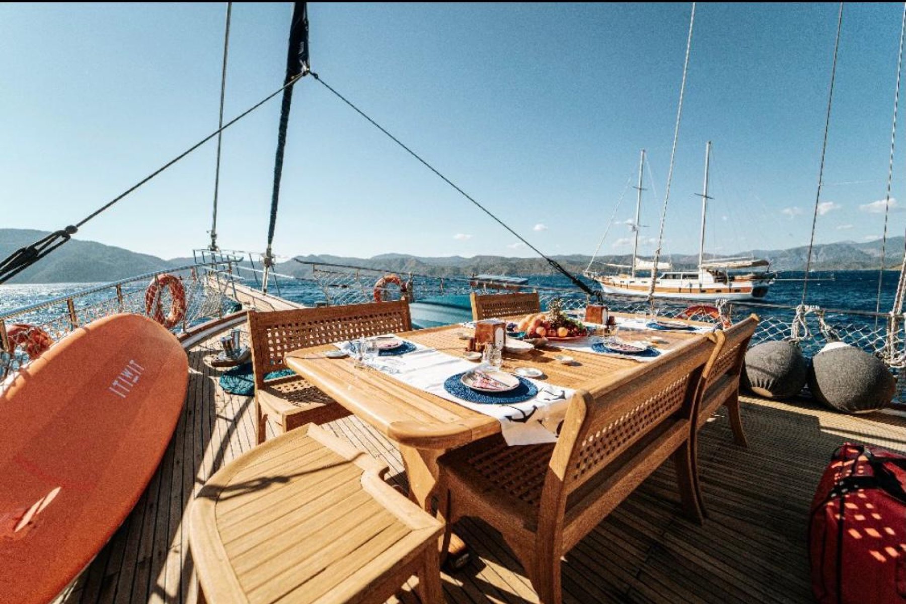 Deneyimli aşçımız dilediğiniz tüm menüleri oluşturmak, Akdeniz ve Ege'nin tüm lezzetlerini sizlere sunmak için sizlerin hizmetindedir. Tekne kiralama sürecinde dilediğiniz menüleri ve özel yemek isteklerini oluşturmak için Ofis personelimiz turunuz başlamadan önce sizlere irtibata geçecektir.
