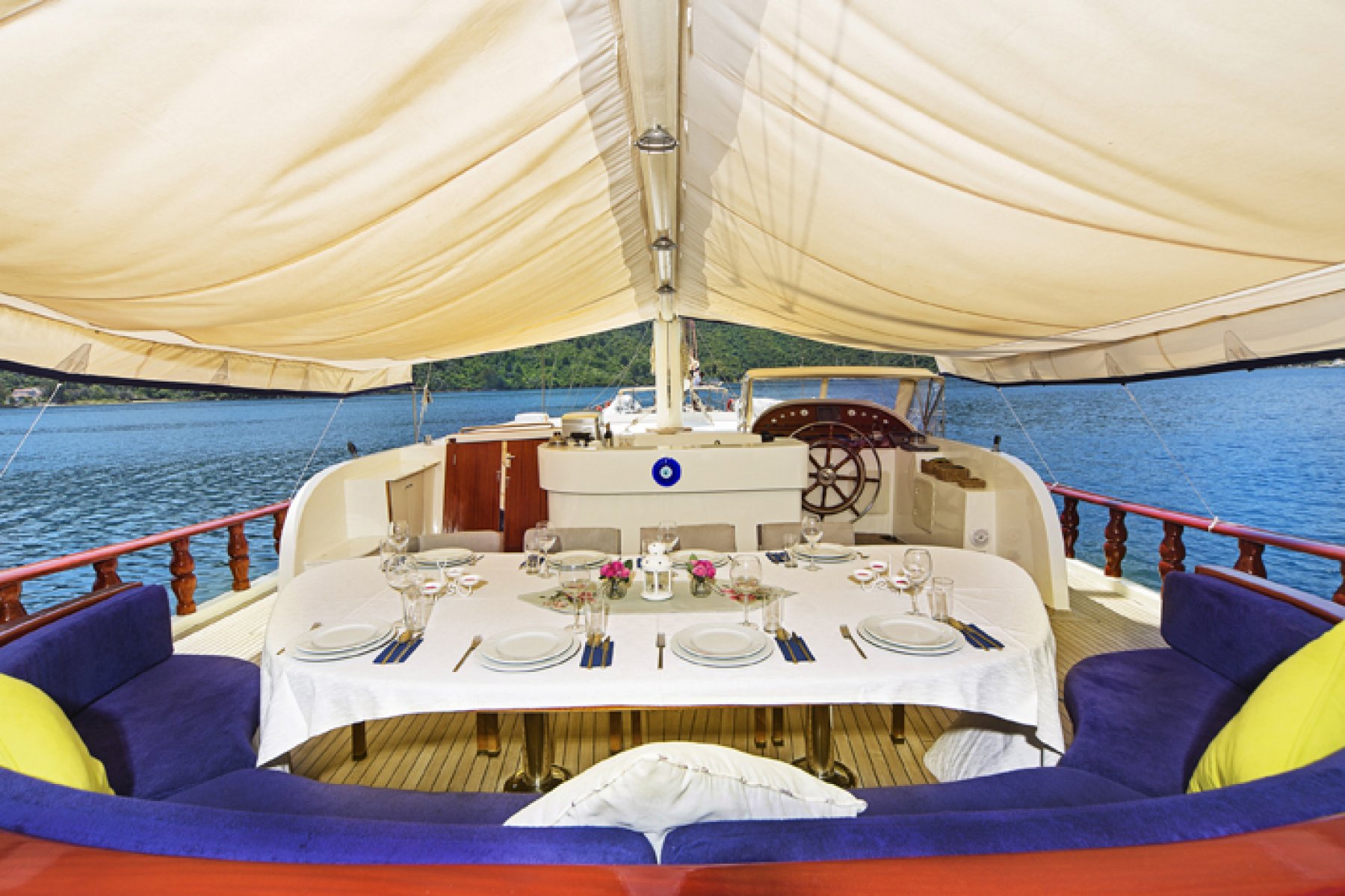 Deneyimli aşçımız dilediğiniz tüm menüleri oluşturmak, Akdeniz ve Ege'nin tüm lezzetlerini sizlere sunmak için sizlerin hizmetindedir. Tekne kiralama sürecinde dilediğiniz menüleri ve özel yemek isteklerini oluşturmak için Ofis personelimiz turunuz başlamadan önce sizlere irtibata geçecektir.