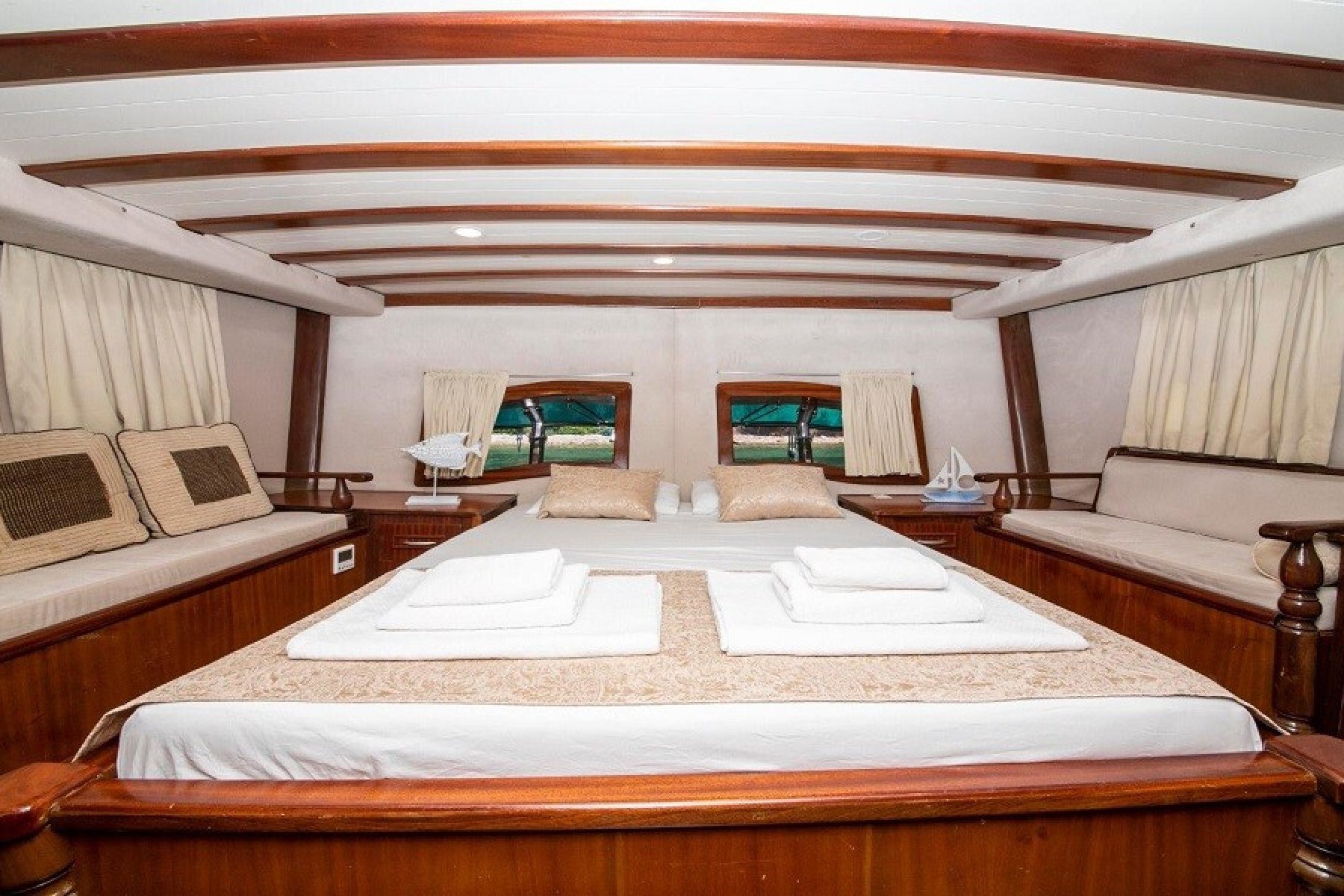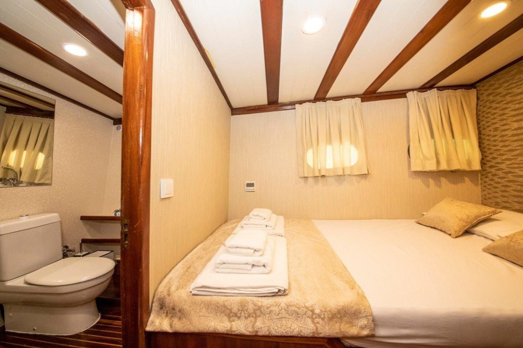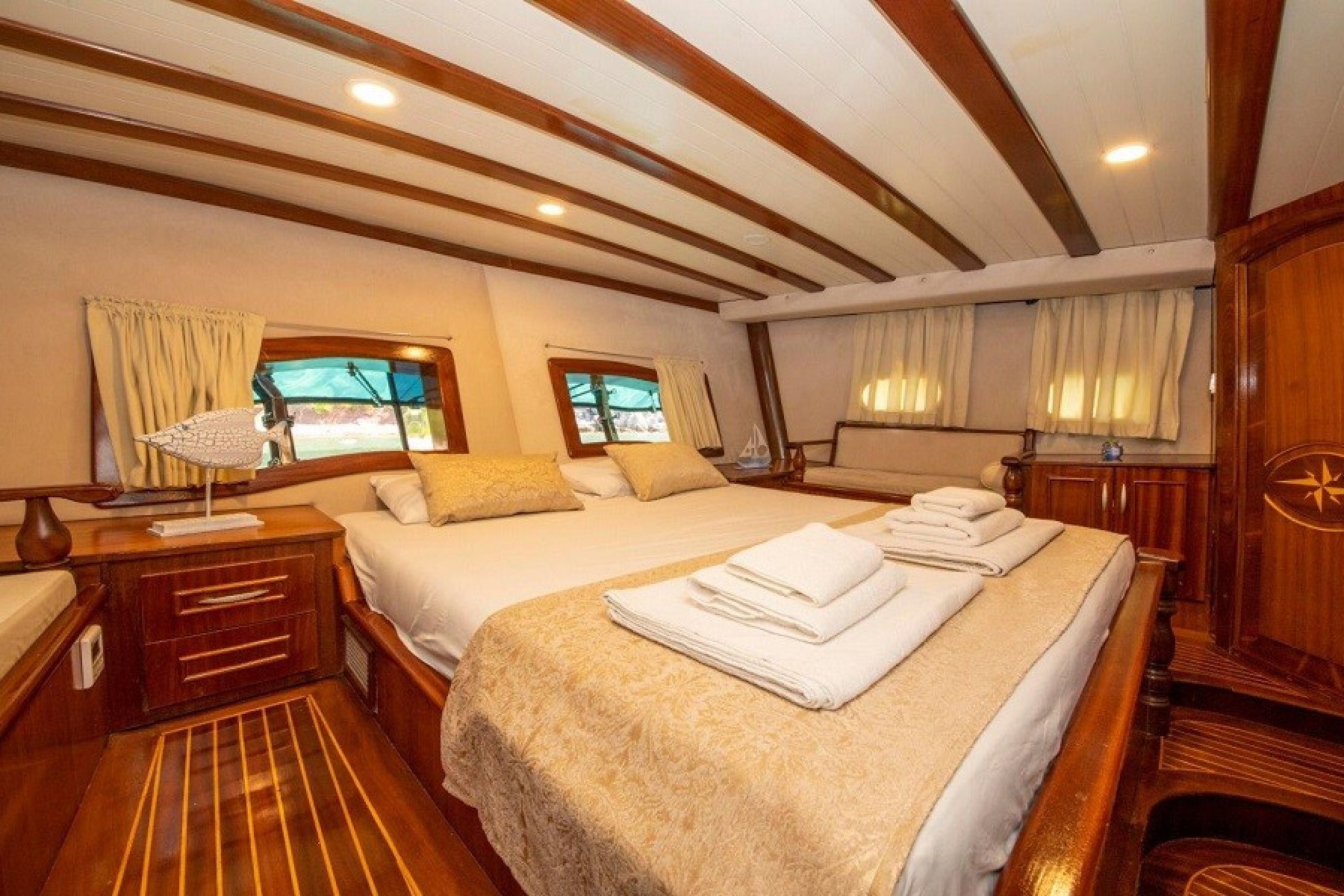 2019 yılında tamamen yenilenen bu guletimiz 24 metre boyu ve 5 klimalı kamarası ile 10 misafire kadar Hisarönü körfezinde mavi tur hizmetleri vermektedir. Teknemizin bağlı olduğu liman Selimiye olup Marmaris Selimiye mavi tur dileyen misafirlerimiz için oldukça ideal bir gulettir. Bu guletimiz ile Hisarönü körfezi ve Datça yarımadası'nın güzelliklerini mavi yolculuk ile keşfedebilirsiniz. teknemizde 2 adet master kabin ve 3 adet double kabin bulunmaktadır. Datça tekne turu gulet kiralama hizmetlerinde ilk sıralarda yer alan bu 10 kişilik guletimiz 3 kişilik mürettebatı ile siz değerli misafirlerimizin mavi yolculuk tatilini kusursuz geçirmeniz için tüm donanıma sahiptir.