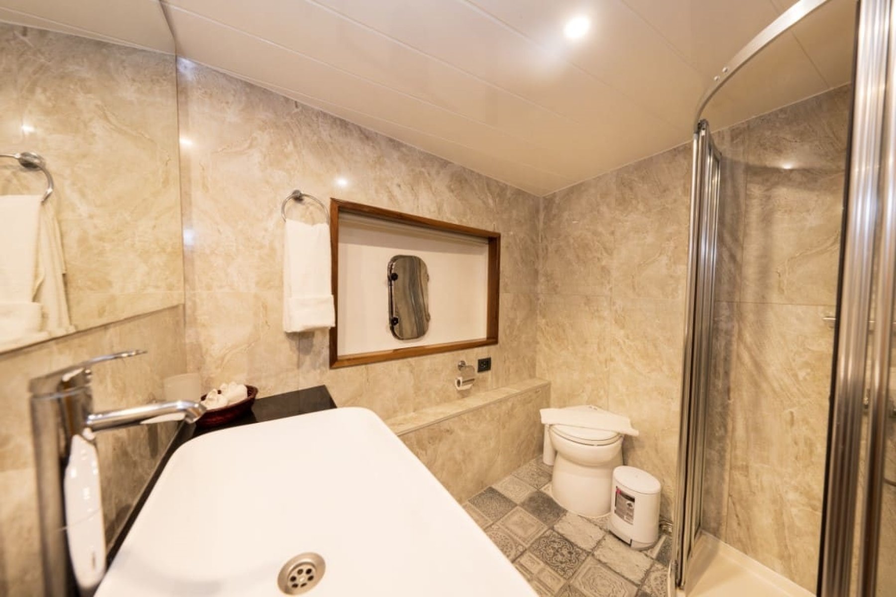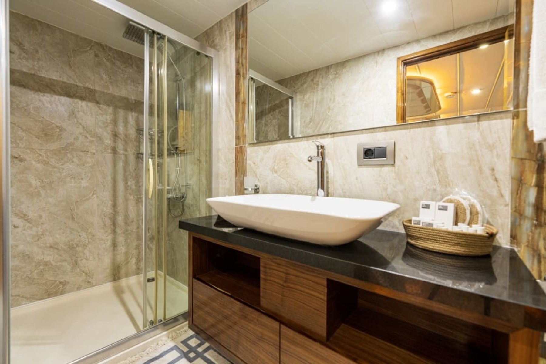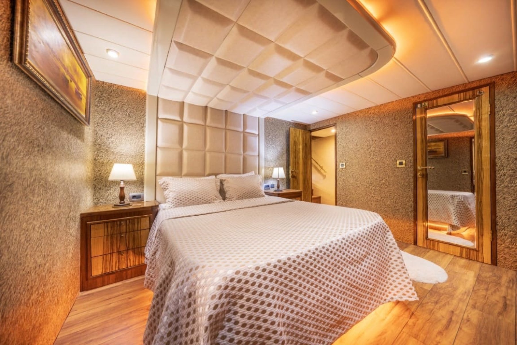 Kabinler sadece uyumak için değil, rahatlamak için de tasarlandı. Özel banyolar, minibarlar, LCD TV & ses sistemi ve gün boyu serinleten klima sayesinde kendinizi evinizde hissedeceksiniz. 2022’de yenilenen dekorasyonu ve zarif ahşap zeminleriyle tekne, modern ve şık bir atmosfer yaratıyor.