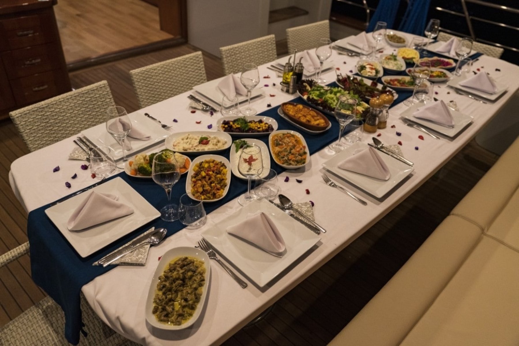 Deneyimli aşçımız dilediğiniz tüm menüleri oluşturmak, Akdeniz ve Ege'nin tüm lezzetlerini sizlere sunmak için sizlerin hizmetindedir. Tekne kiralama sürecinde dilediğiniz menüleri ve özel yemek isteklerini oluşturmak için Ofis personelimiz turunuz başlamadan önce sizlere irtibata geçecektir.