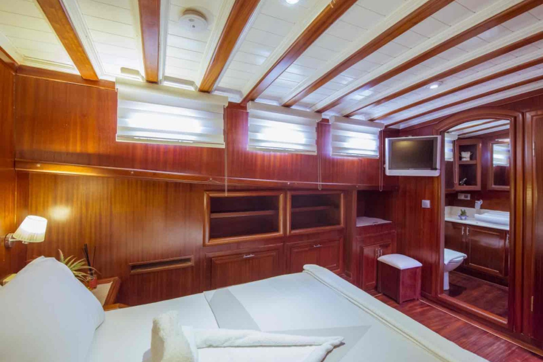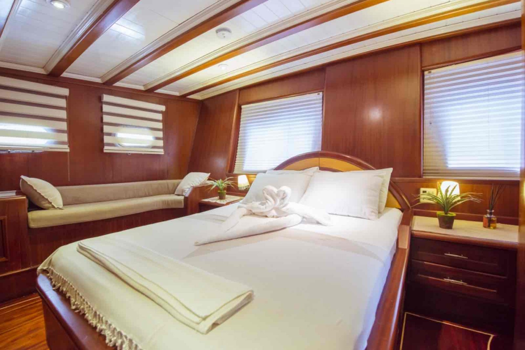 24 metre uzunluğundaki bu teknemiz 1 master 2 double ve 2 twin klimalı oldukça geniş kamaraya sahiptir. Kaptan, özel aşçı ve 2 gemiciden oluşan 4 güleryüzlü ve profesyonel mürettebatı ile Marmaris lüks gulet deneyimi sunmaktadır.